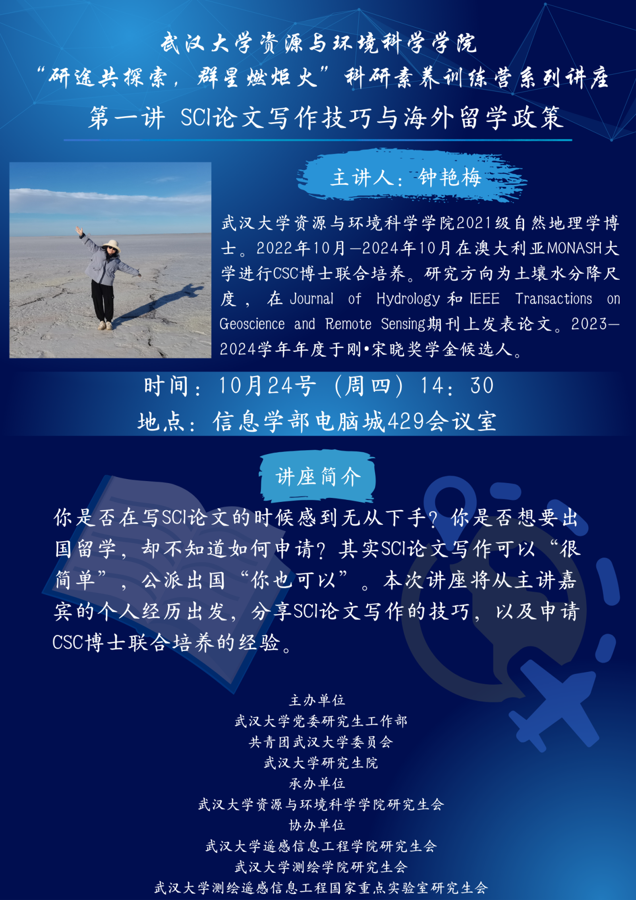 你是否在写SCI论文的时候感到无从下手?你是否想要出国留学,却不知道如何申请?其实SCI论文写作可以“很简单”,公派出国“你也可以”。本次讲座将从主讲嘉宾的个人经历出发,分享SCI论文写作的技巧,以及申请CSC博士联合培养的经验。