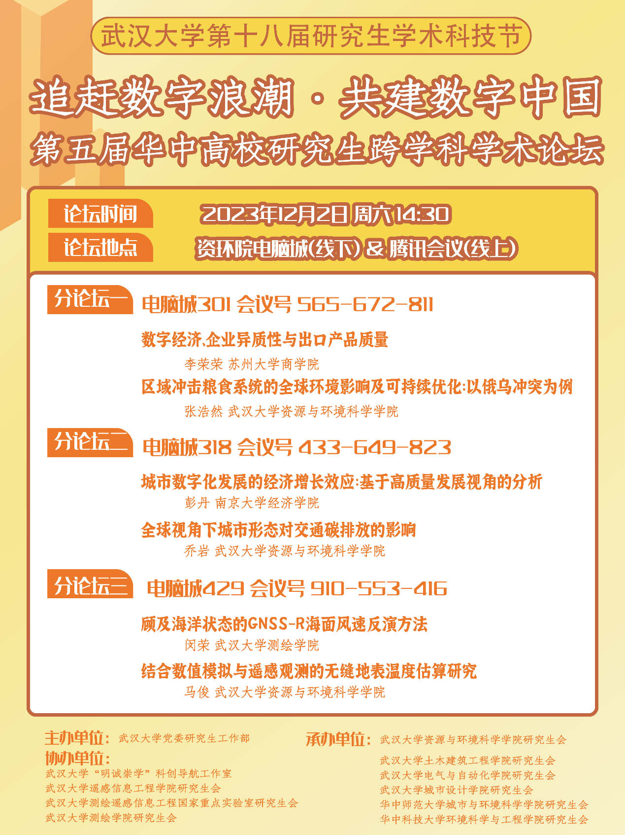 本次活动将采用“线上+线下”的模式进行,活动期间全程使用腾讯会议同步论坛情况,并安排专人负责连线,现场的嘉宾、学子与线上的参会人员可进行远程交流。