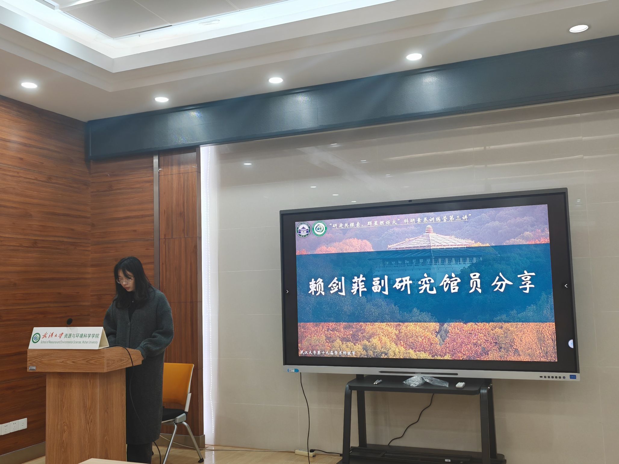 图书馆学术交流与服务中心学科服务部的副研究馆员赖剑菲老师。嘉宾以“洞悉现在,探索未知——文献信息资源检索与利用”为主题,从文献检索、文献分析、文献追踪以及学术服务和 AI 学术能力等四个方面展开了详细的讲解。