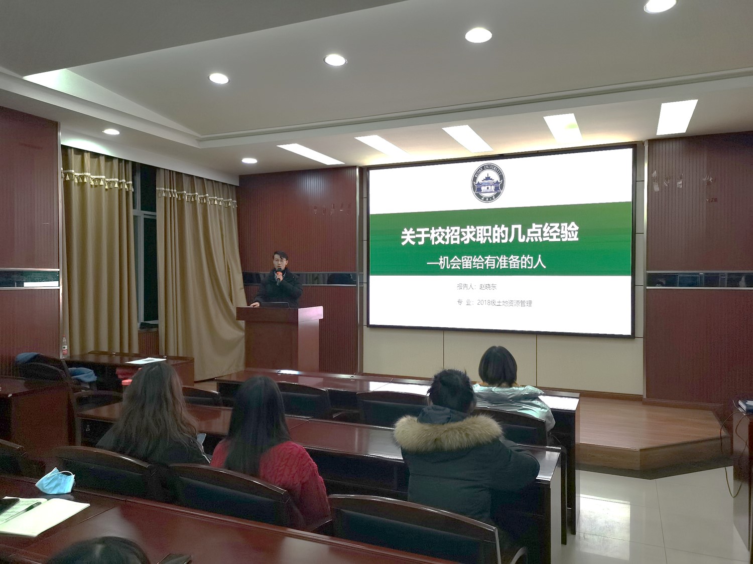 2020年12月17日晚上19时,第一场秋招经验分享会在院办220准时开始。分享会主要划分为嘉宾经验分享、同学们提问以及现场抽奖3个环节。