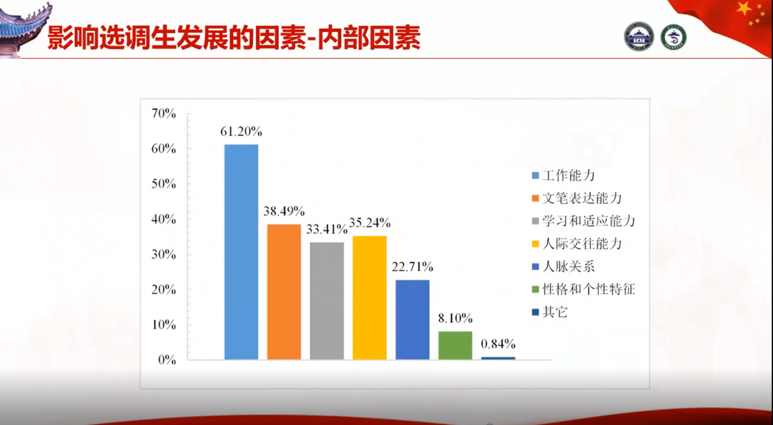 在择业和选调生个人发展方面,陈世明同学强调选调生报考前需要确认是否符合报考条件以及个人备考情况,特别是主观上需要结合个人定位,避免盲目跟风报考。他更加强调选调生是公务员中的公务员,在工作生涯中要时刻提升个人工作能力、文笔表达能力、学习和适应能力以及人际交往能力,这四部分也是影响个人发展的重要因素。