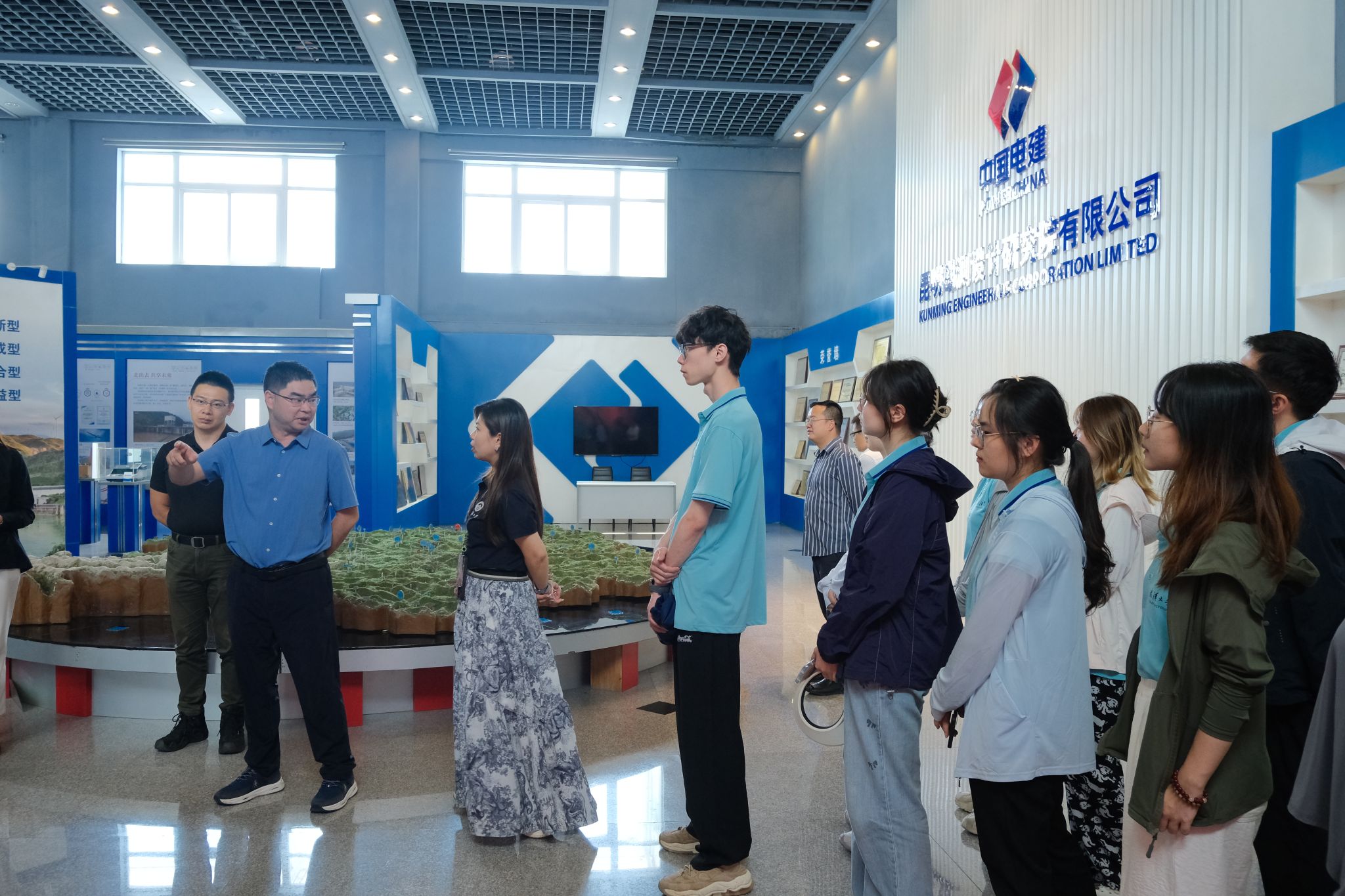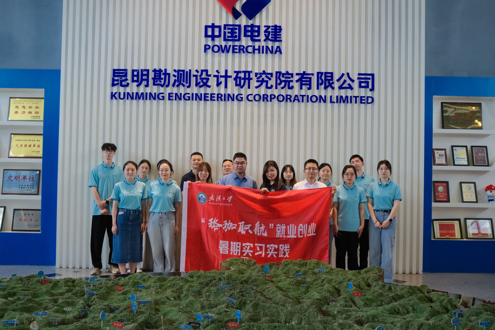 7月18日下午,实践调研团队来到了中国电建集团昆明勘测设计研究院有限公司(以下简称“中国电建昆明院”),在校友闻平的带领下参观了院史馆,感受到其在国家水电能源及基础设施建设等领域的重要贡献与宏伟蓝图。