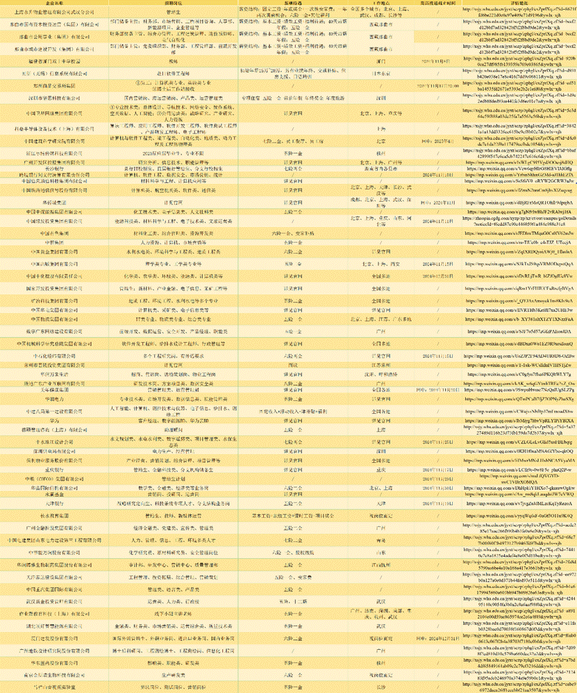 (公务员考试、公职类中红色文字为此前统计有确切截止日期且暂未逾期的招聘信息,黑色文字为新增信息;企业类为新增信息。)
