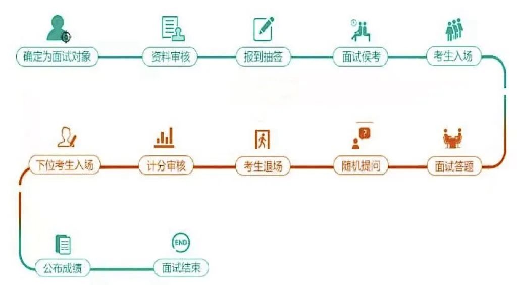 完整的结构化面试一般包括确定为面试对象、资格审核、报到抽签、面试候考、进入考场、面试答题、考生退场、公布成绩这些阶段。在入围面试、资格审核环节上,考生严格按照面试公告的具体要求准备材料就可以了。本期资环职航主要重点讲一下从进入考场到退场的环节,让大家深入地了解结构化面试的具体流程。