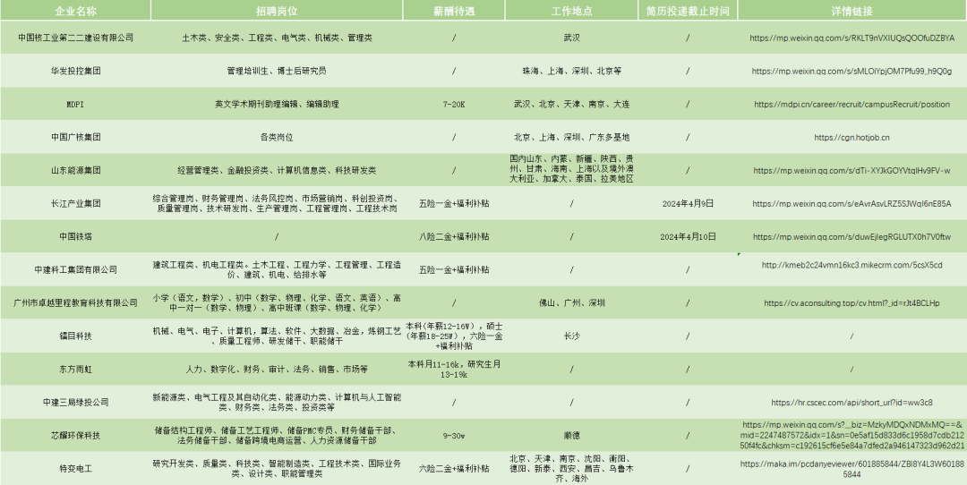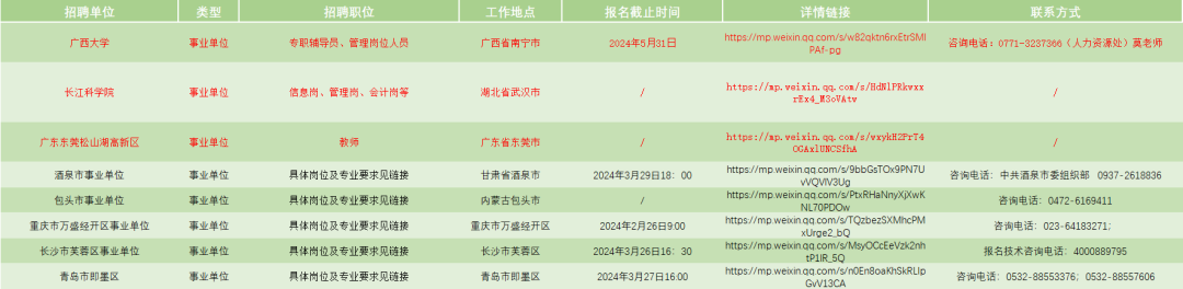 (公考类、公职类中红色文字为此前统计有确切截止日期且暂未逾期的招聘信息,黑色文字为新增信息;企业类为新增信息。)