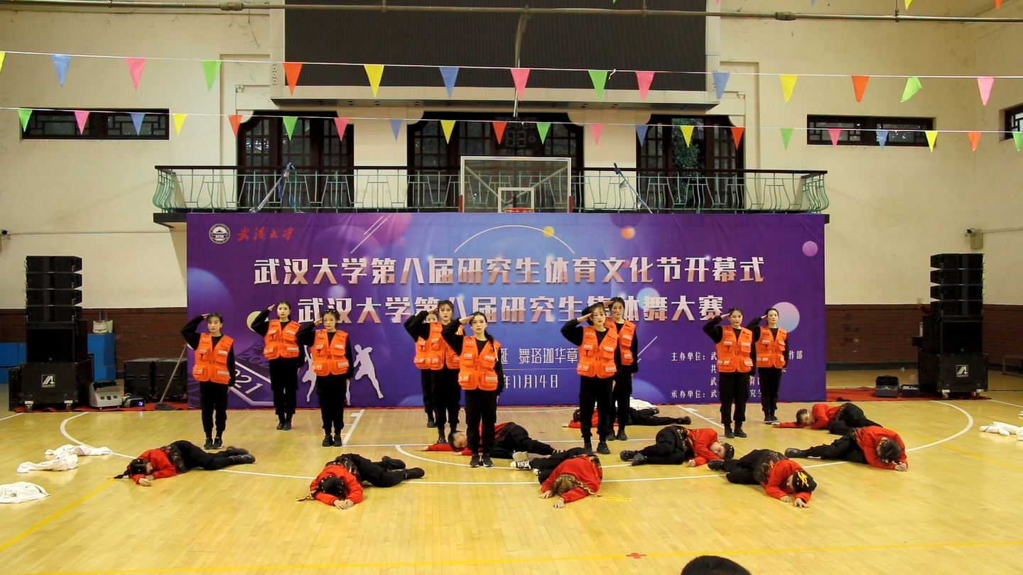 队伍第二十个上场,舞蹈编排融合了jazz、hippop、breaking,表现了与众不同的风格。开场,舞蹈队员们有序进场、站在了指定位置,音乐一响起,错落有致的开场动作让观众们眼前一亮。舞蹈整体分为三段,第一段展示美好的校园生活,富有青春活力的少年们在校园中尽情释放青春的美好,舞蹈整体衔接顺畅,节奏顿挫相间,元素丰富多彩,给评委与线上观众带来了很强的视觉冲击;第二、三段展示在大火弥漫的时刻,消防官兵火速集结,拯救人民于危难,队员们情绪投入,表情生动,舞蹈队形变换丰富而有层次,爆点不断的动作将表演推向高潮,直播弹幕疯狂刷屏,珞珈学子为资环队员热情打call。最后,火灭、官兵敬礼的ending pose为整个舞蹈画上圆满句号,整齐划一的口号:“赴汤蹈火,竭诚为民,向英雄致敬”响彻宋卿!