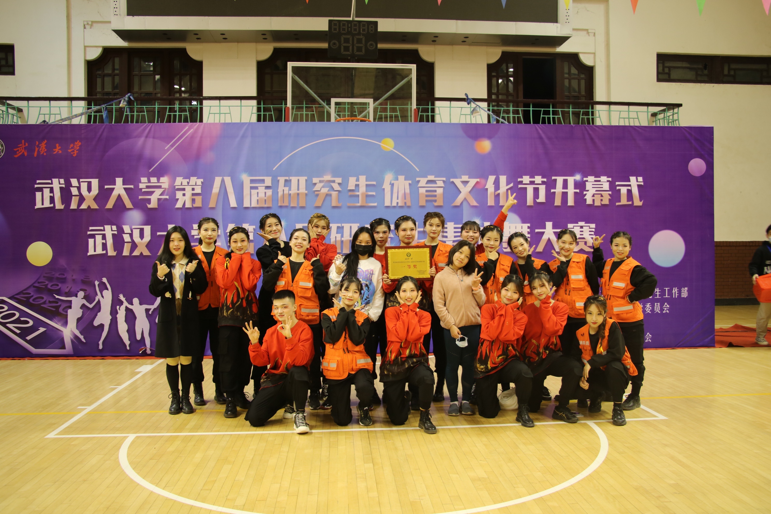 研究生舞蹈队精心准备的舞蹈《火线救援》以飒爽的英姿、干净利落的动作和整齐动感的舞姿,得到了94.33的高分,获得了本届集体舞大赛的一等奖以及本次大赛最佳人气奖!