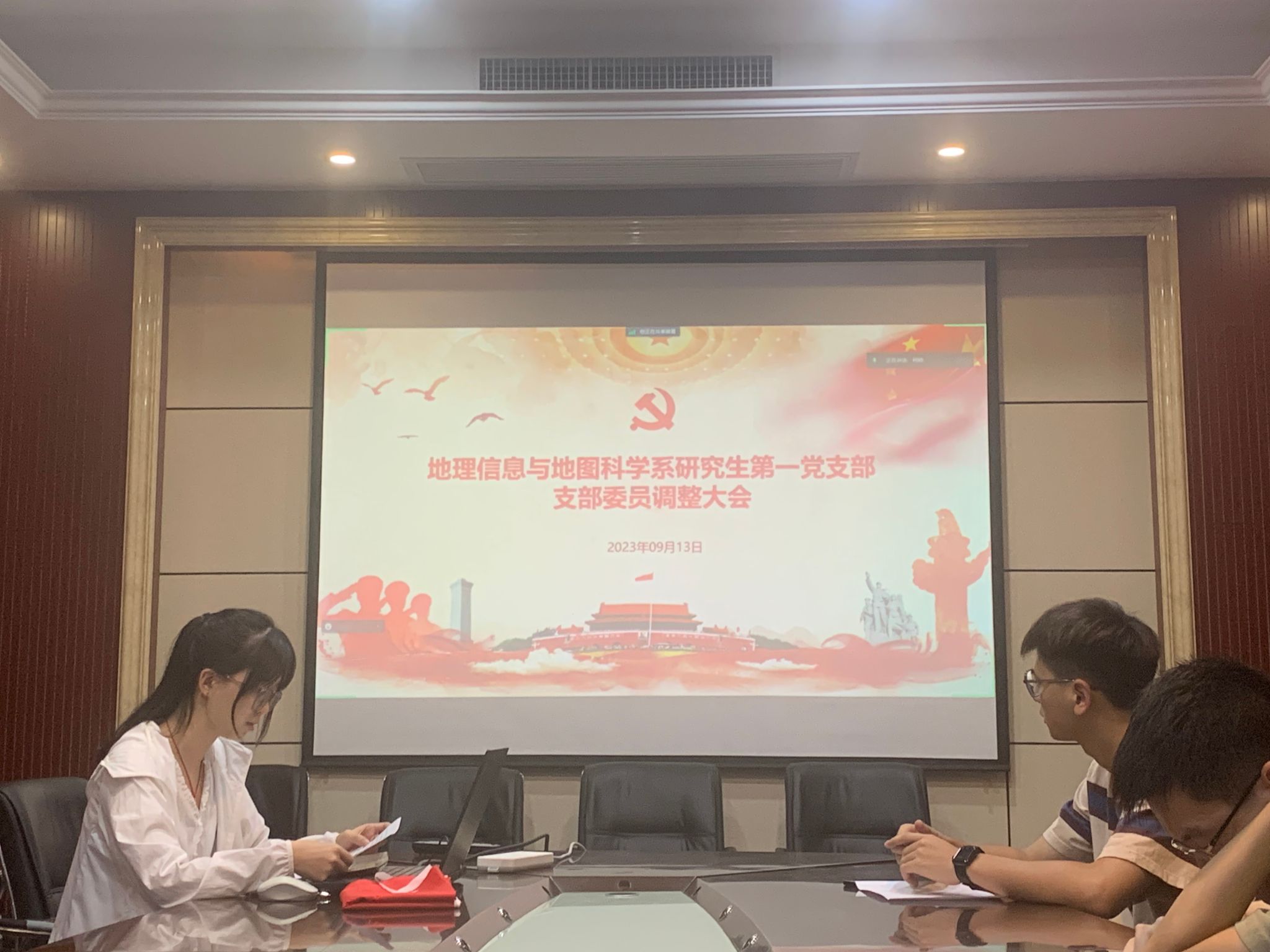 2023年9月13日晚七点,地理信息与地图科学系研究生第一党支部于院办504会议室召开支委调整会议。本次会议由支部书记柯婷同志主持,支部党员、预备党员参与此次会议。