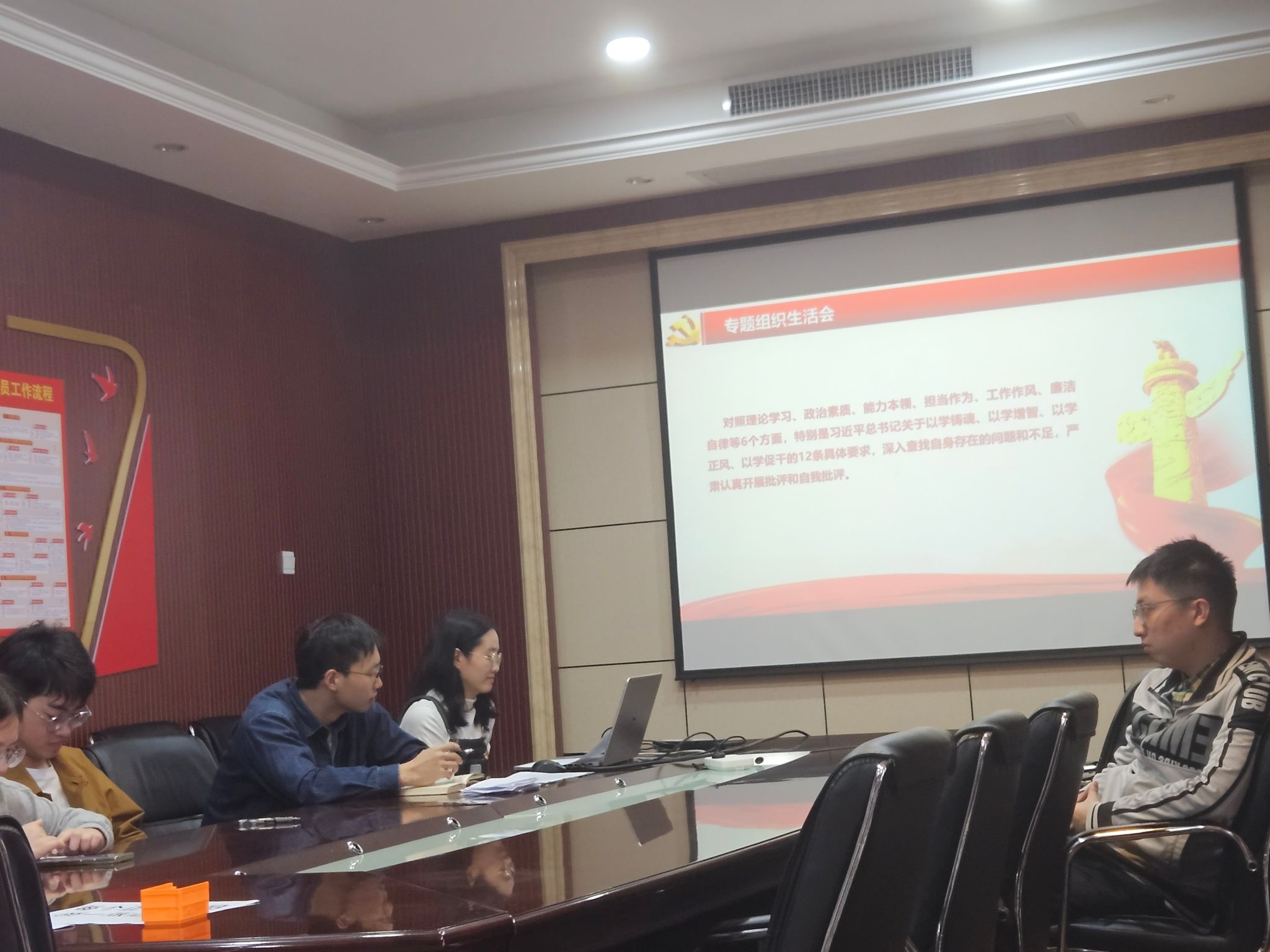 504会议室召开了党支部支委调整暨专题组织生活会。大会由辛格格同志主持,支部全体党员、预备党员及入党积极分子参与此次会议。