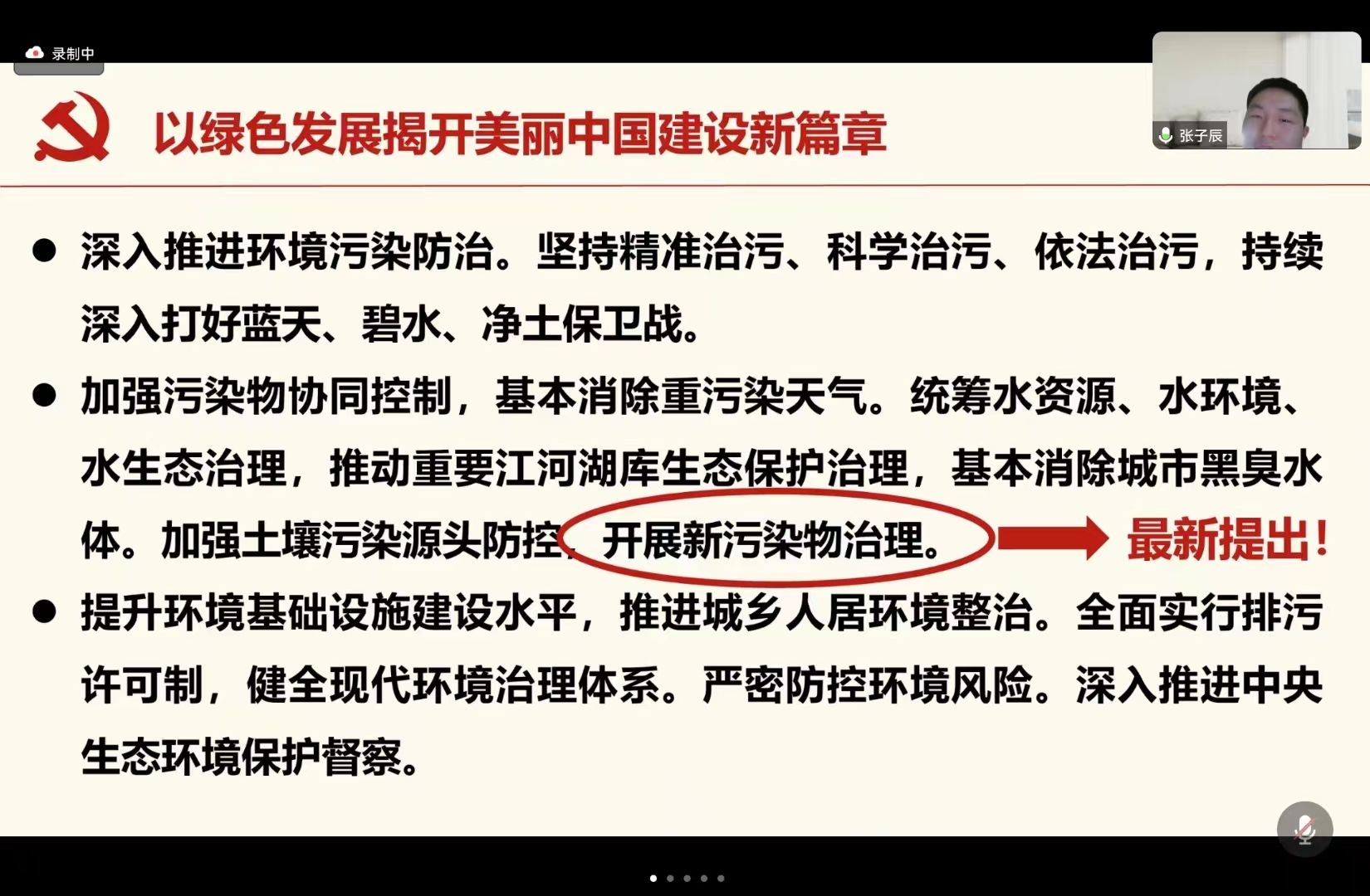 张子辰同学特别强调,“开展新污染物治理”是我们国家最新提出的方案,并建议与会党员积极了解治理新污染物的最新理念方针政策。