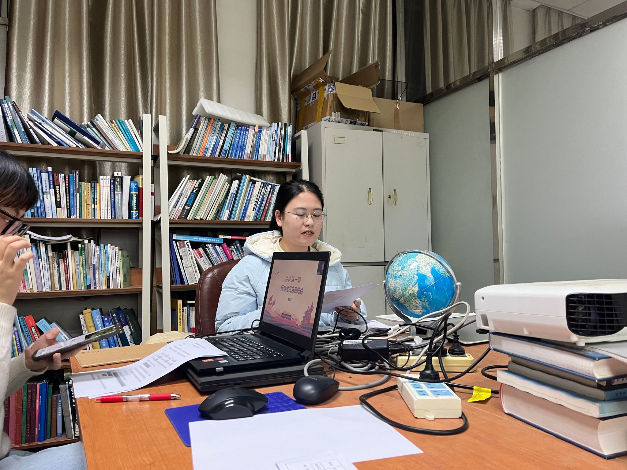 会议第二项,党支部书记刘邱源同志强调了关于党费收取的问题,并动员与会成员积极参与鲲鹏之声宣讲大赛的筹备工作。