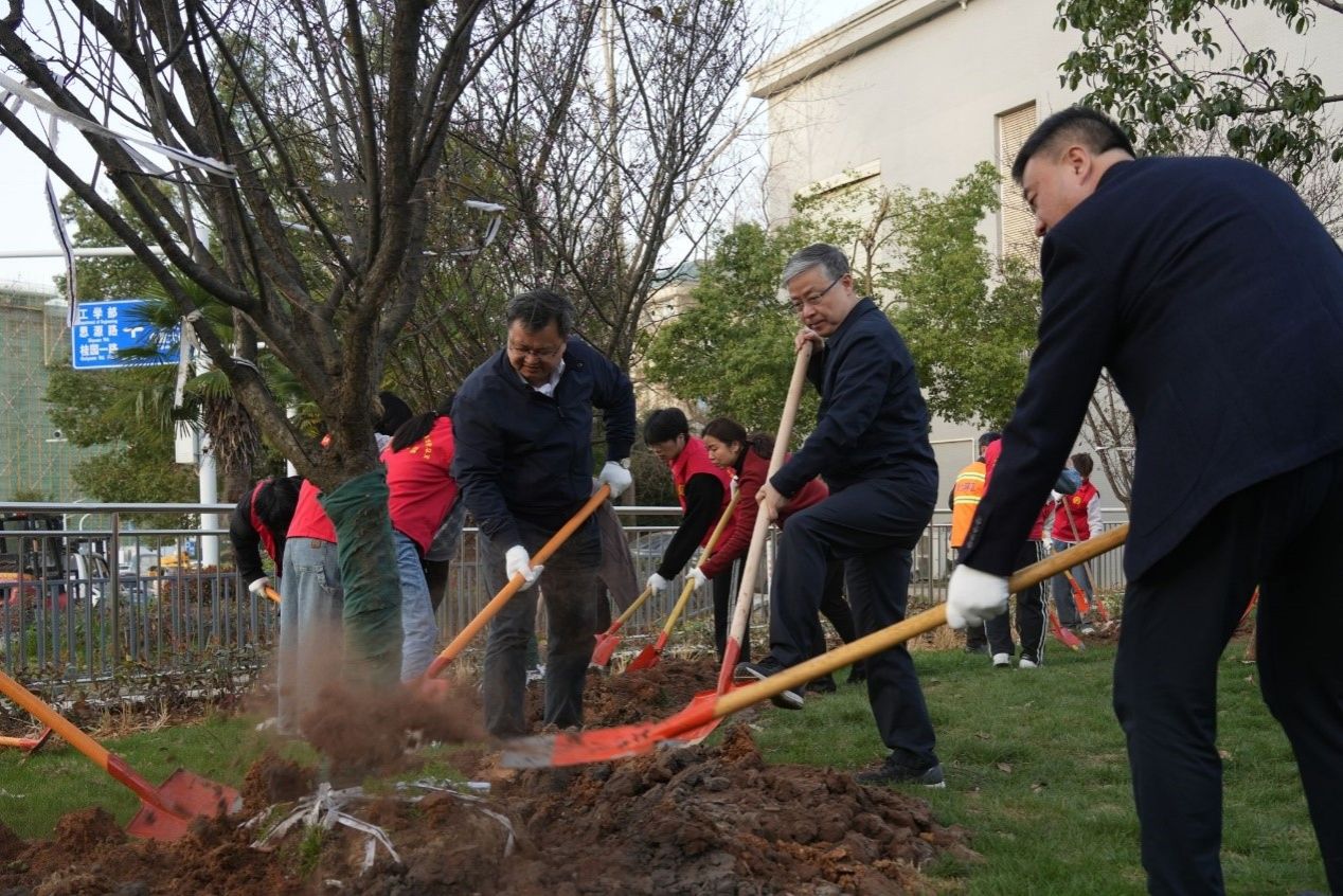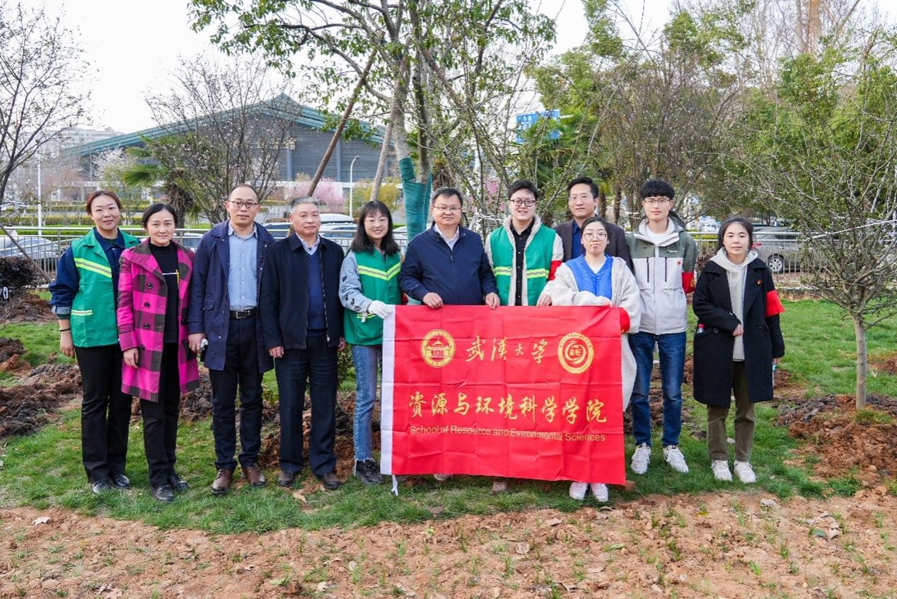阳春三月万物苏,植树添绿正当时。为深入学习宣传贯彻习近平生态文明思想,牢固树立“绿水青山就是金山银山”理念,落实生态环境保护建设,提高校园绿化覆盖率,激发党员群众爱林造林热情,319日下午,环境科学与工程系研究生第一党支部成员作为学生志愿者参与了“植树添绿,共建美好‘珈’园”义务植树志愿活动。校党委书记黄泰岩、校长张平文等在校领导,部分机关职能部门干部,计算机学院、测绘学院教职工代表,以及学生志愿者等共160余人共同参与。各院师生代表在雷军科技楼东北侧齐聚一堂,开展义务植树活动,为校园增添新绿。