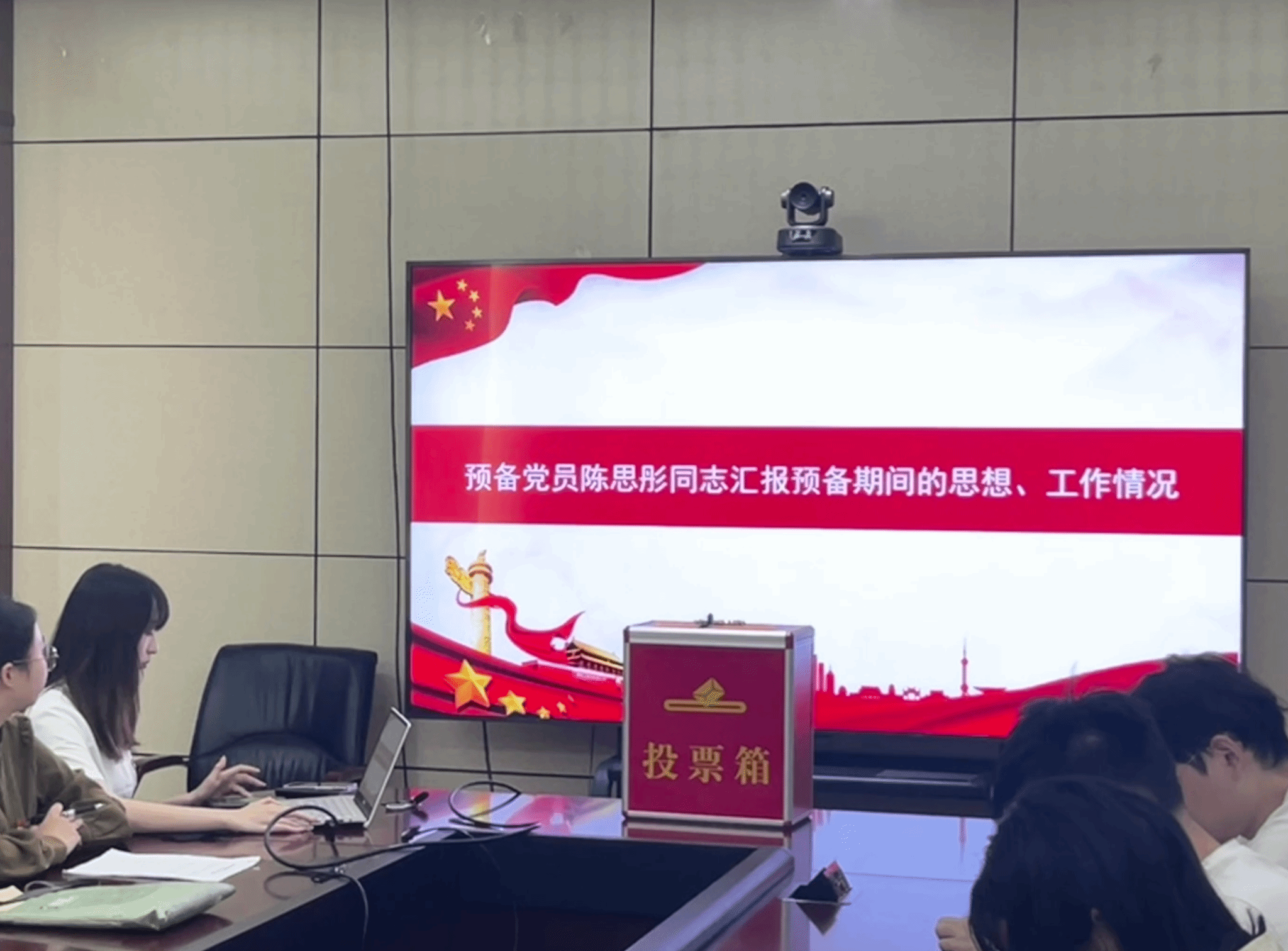 320会议室召开预备党员转正暨接收预备党员大会。本次会议由党支部书记张梦琪同志主持。本次会议应到正式党员19名,实到正式党员16名,有表决权的到会人数超过应到会有表决权人数的半数,符合规定人数。