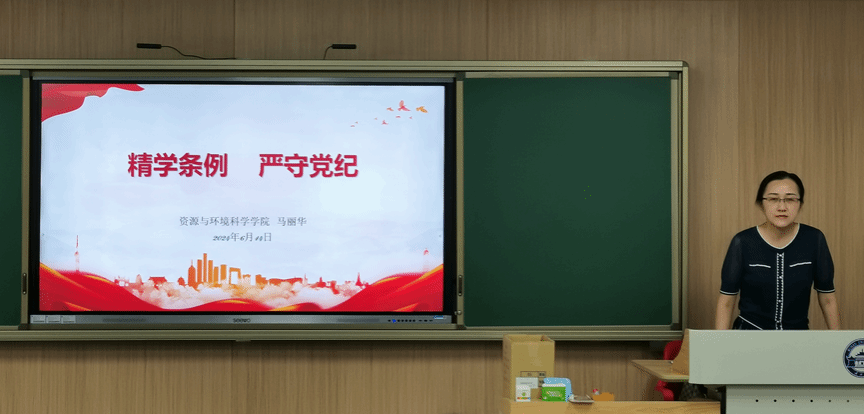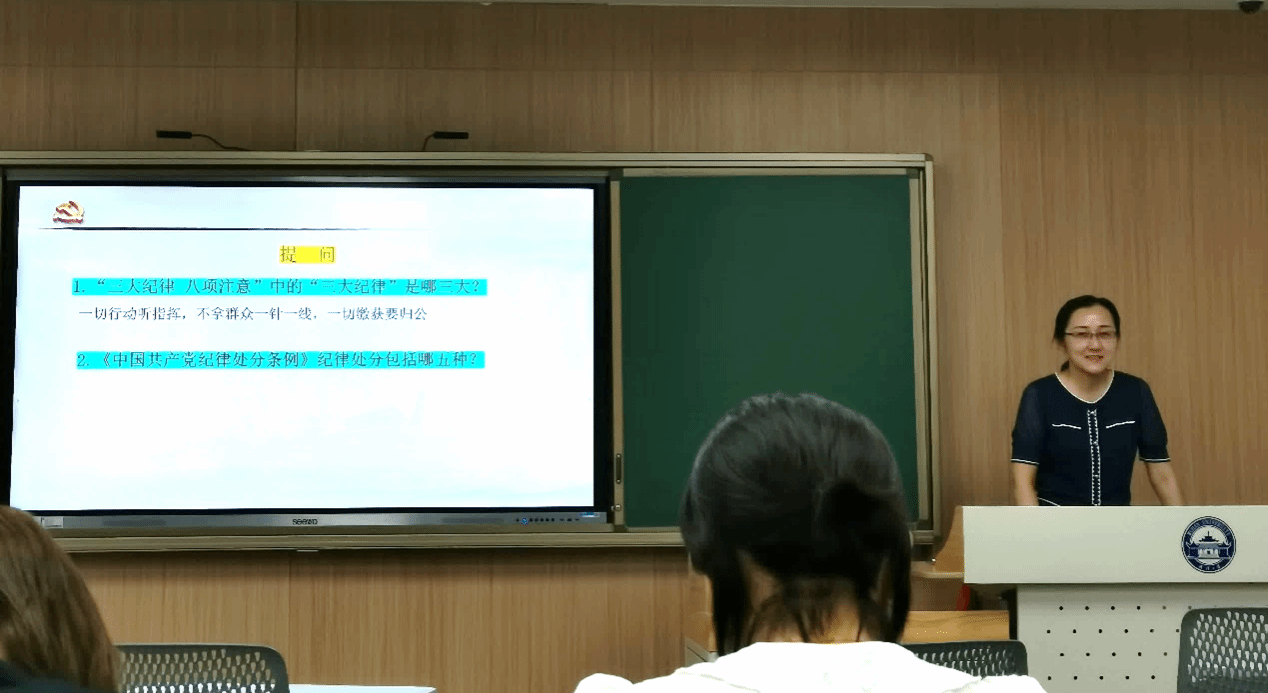 马丽华书记为学生支部讲党纪主题微党课,党课主题为“精学条例、严守党纪”。从“严守纪律是党的优良传统和基本特性”、“《中国共产党纪律处分条例》主要内容”、“把握重点扎实开展党纪学习教育”三个方面展开讲解。重点概述了党的纪律建设历史,《条例》中关于政治纪律、组织纪律、廉洁纪律、群众纪律、工作纪律和生活纪律六个方面的相关内容,以及开展党纪学习教育的关键点。同时结合环境专业党支部的特点,针对性的以“转发多篇妄议中央大针方针等有害内容”和“大气环境质量监测数据不如实报告和造价”两个实例教育广大党员需要明确是非界限;严守党的纪律;规范自己的行为;对自己、对群众负责。同时书记就所讲内容提出三个问题,并得到准备回答。