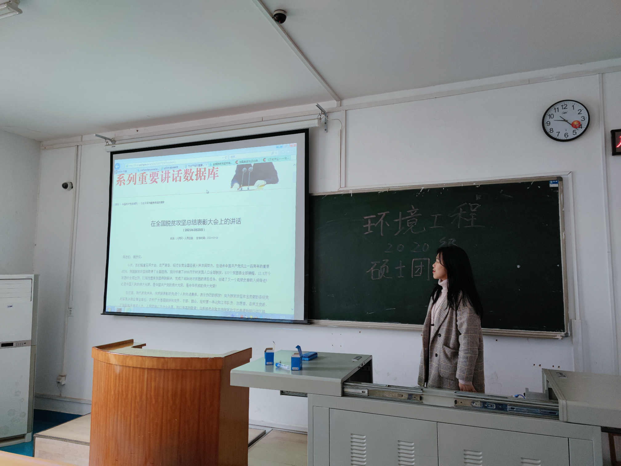 “脱贫攻坚,取得了物质上的累累硕果,也取得了精神上的累累硕果。”在全国脱贫攻坚总结表彰大会上,习近平总书记深刻总结在脱贫攻坚伟大斗争中锻造形成的脱贫攻坚精神,号召全党全国全社会大力弘扬脱贫攻坚精神,团结一心、英勇奋斗,不断夺取坚持和发展中国特色社会主义新的更大的胜利。作为新时代的共青团员,更应该响应习近平总书记号召。为此,我们2020级环境工程专业硕士团支部举办了这次“弘扬脱贫攻坚精神,展现美好青春风华”主题团日活动。
