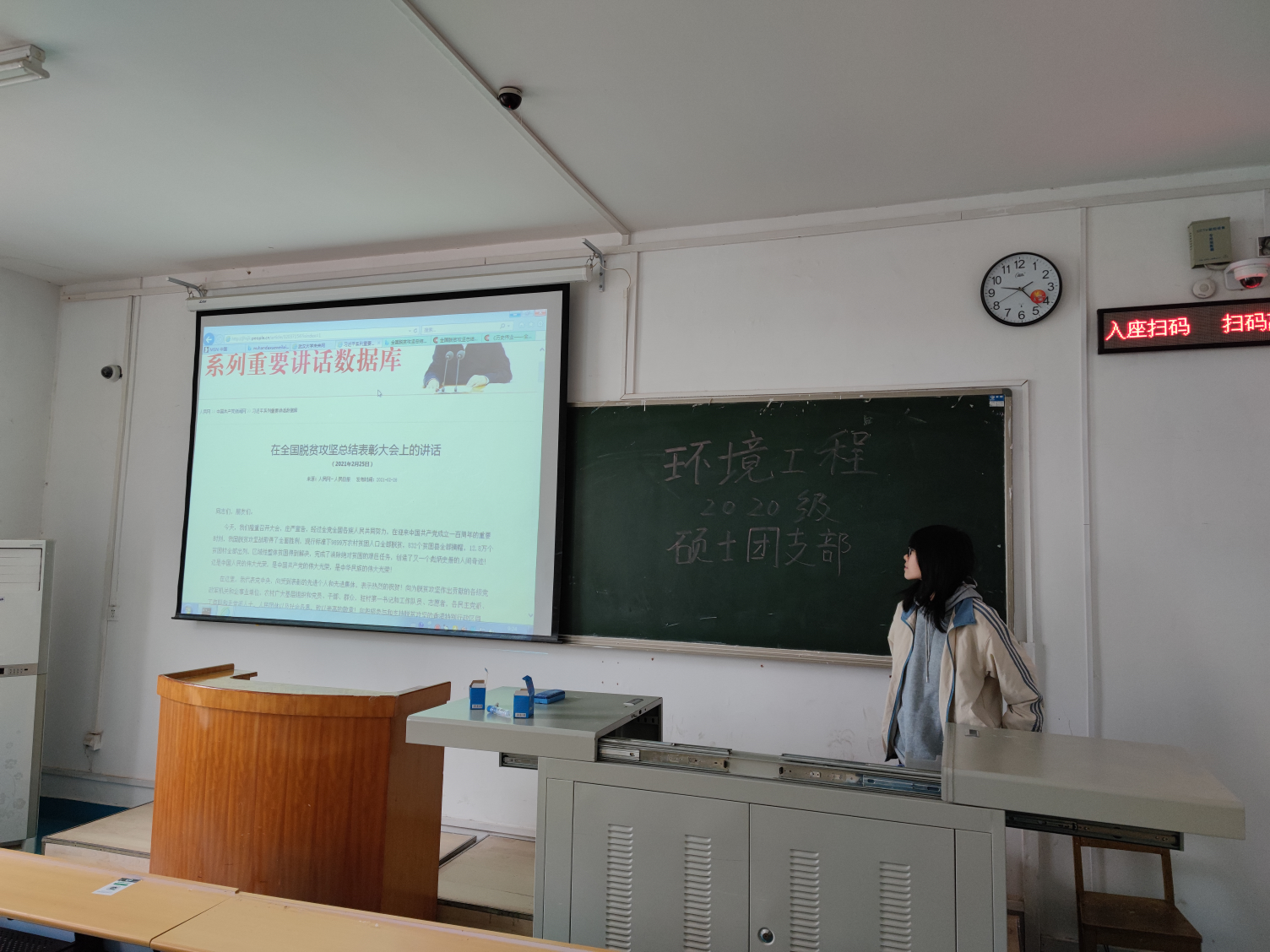 在团支书的组织下,大家首先一起学习了习近平总书记在全国脱贫攻坚总结表彰大会上的讲话。