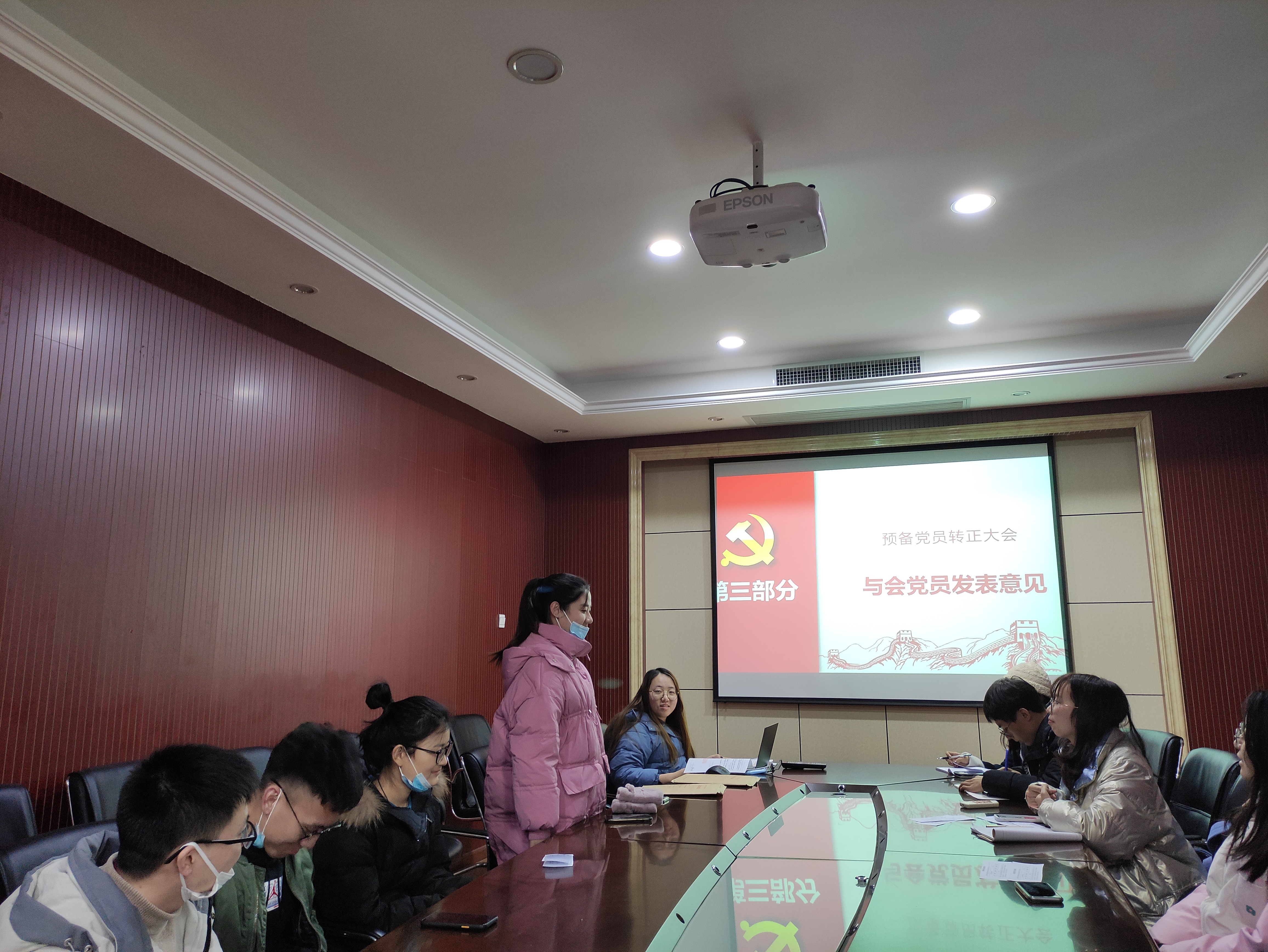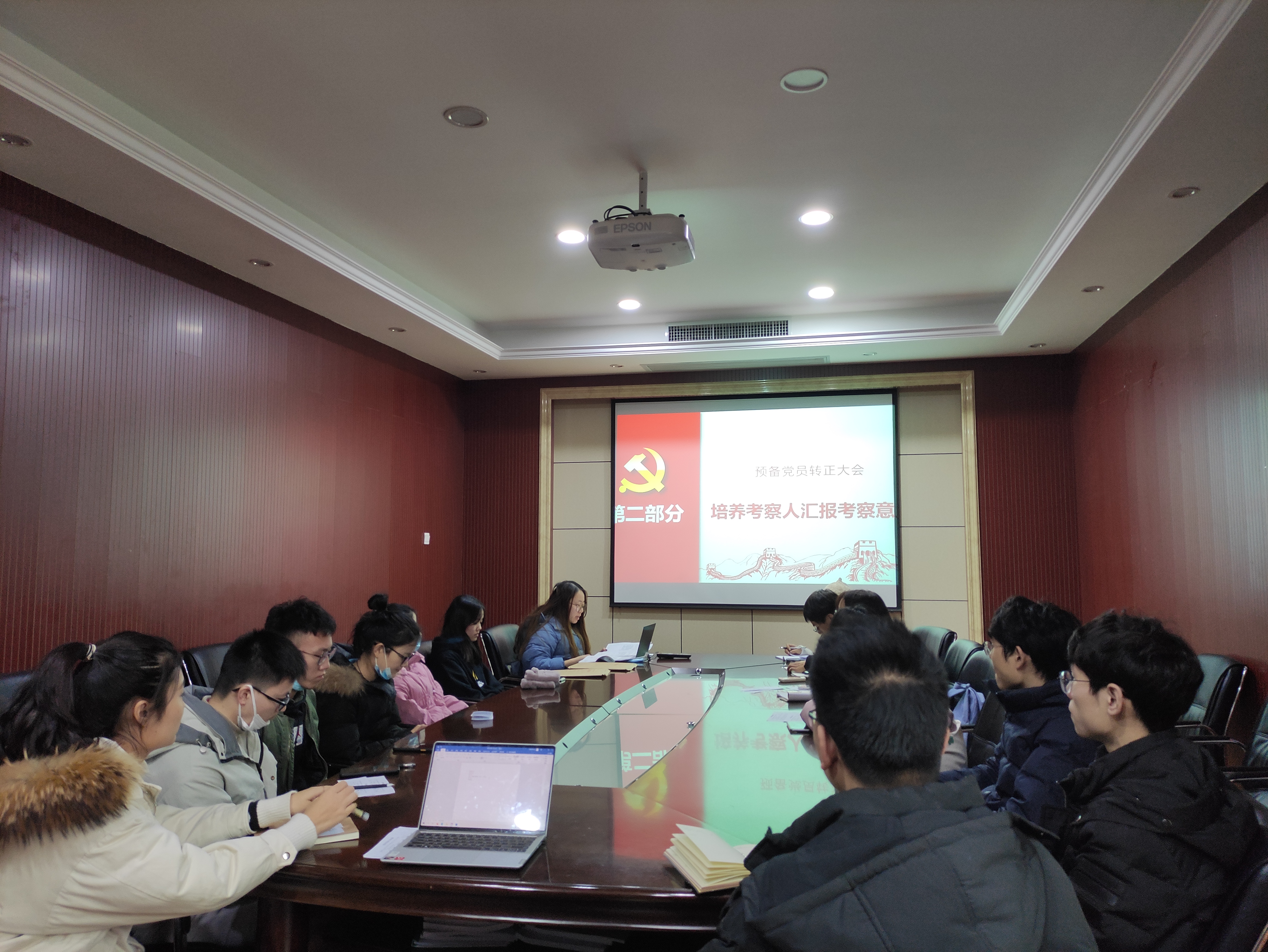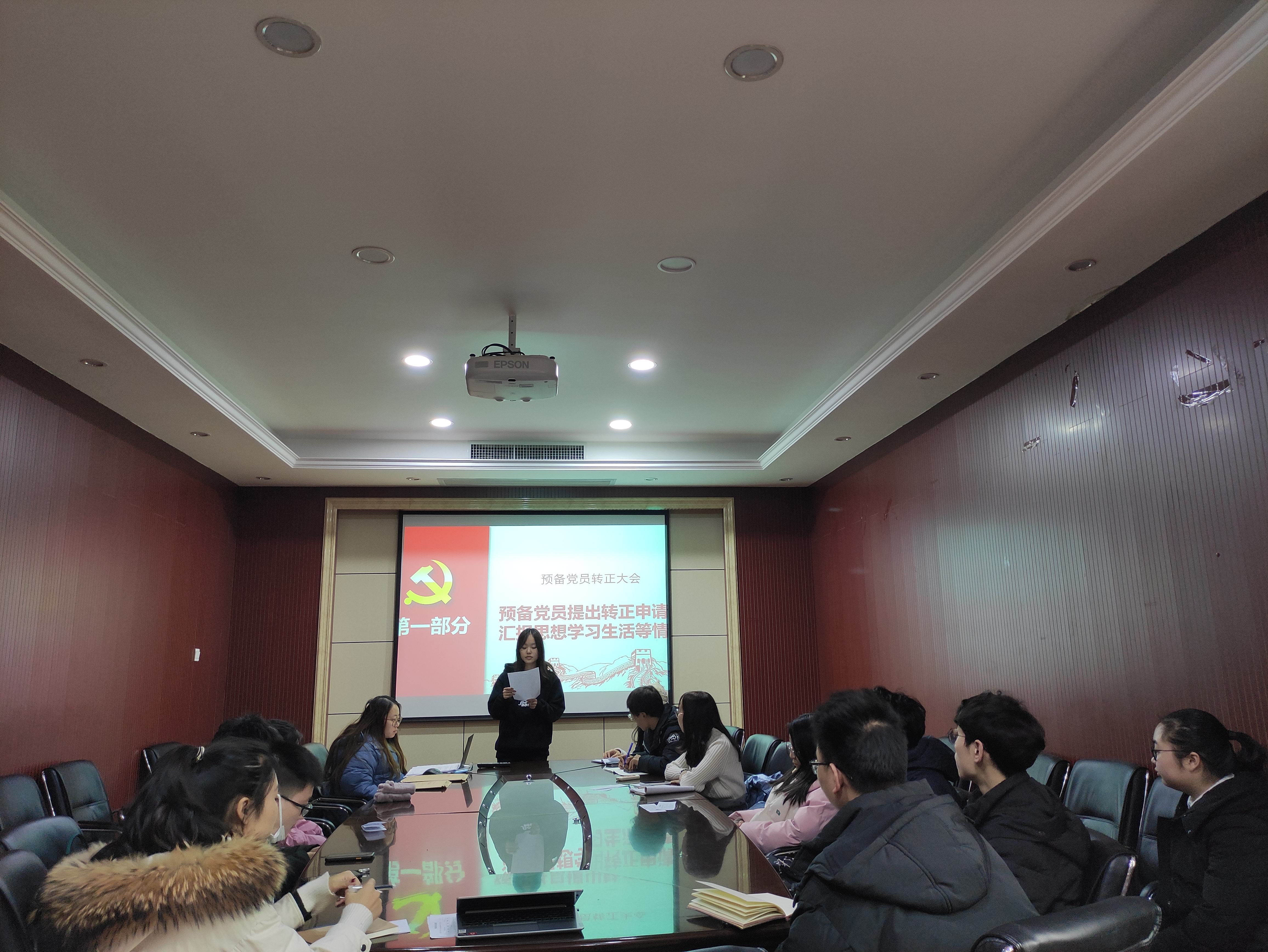 会议议程严格按照各项程序要求。会议开始,辛成同志和顾滢同志宣读《转正申请书》,汇报了自己在预备期间的表现,总结了在思想、学习、生活、工作上的进步,指出自身仍需改进的地方并提出今后的努力方向,郑重地向党组织提出转正申请。