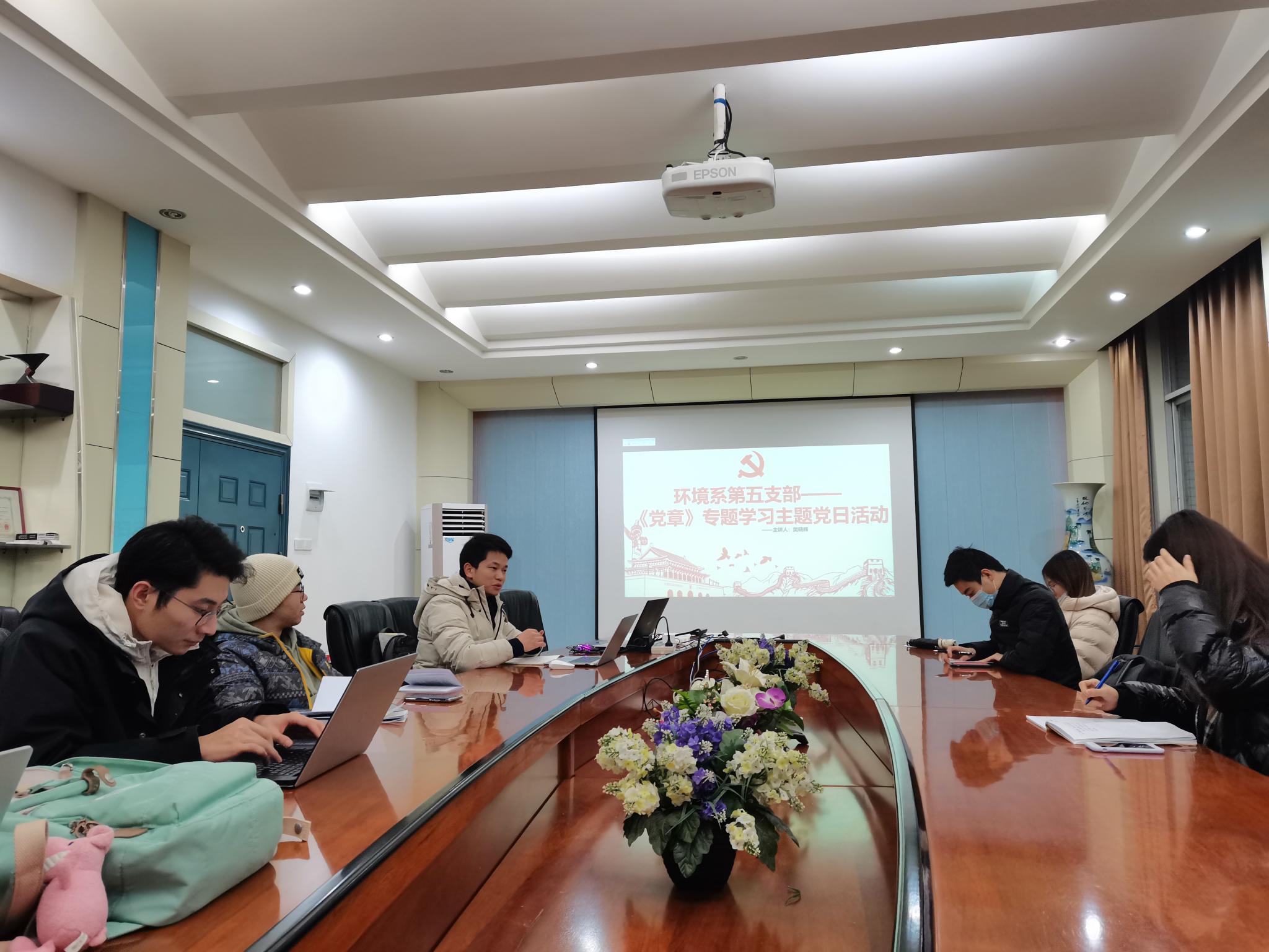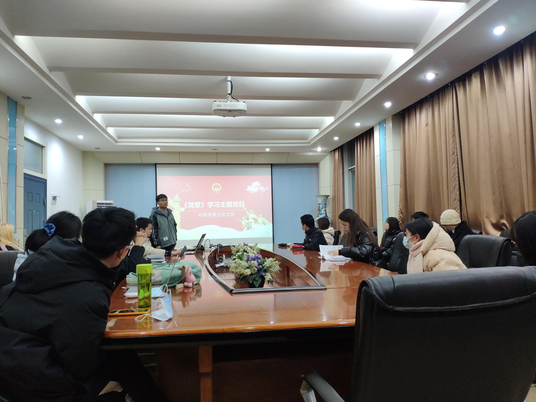 2020年12月14日晚上7:00,环境系第五党支部在学院301办公室组织开展了学习解读《中国共产党章程》主题党日活动,本次到会党员(含预备)16名,积极分子8名。不忘初心方能砥砺前行,激励各位同志自觉担负起为党和人民的事业奋斗终身的重任。