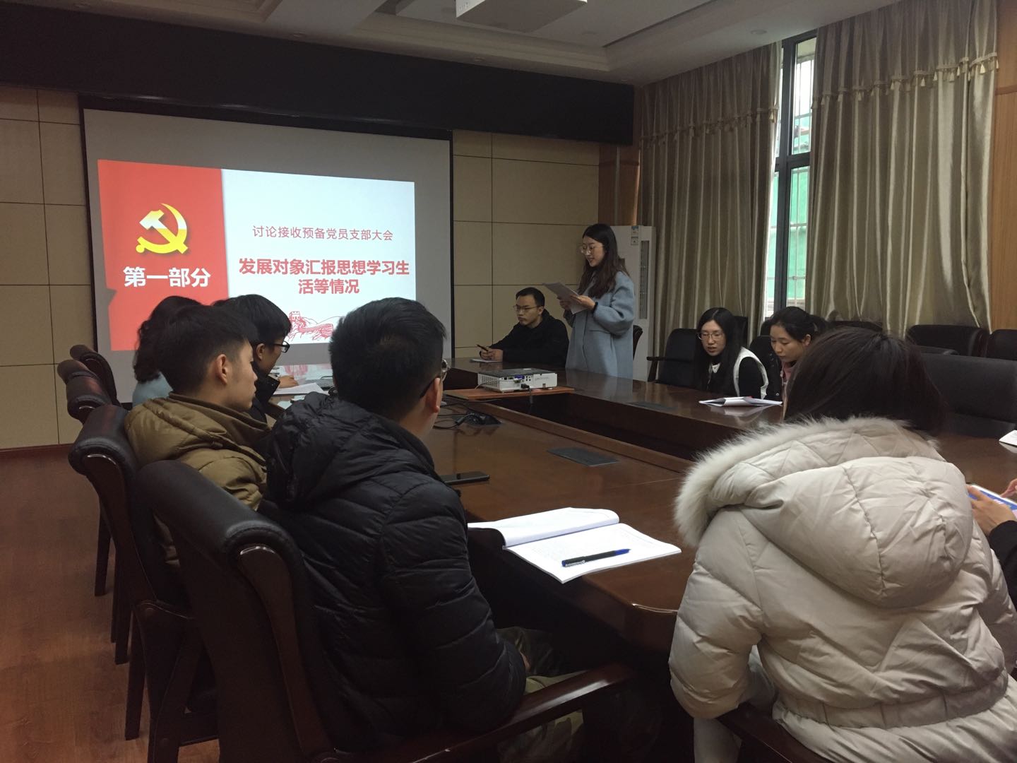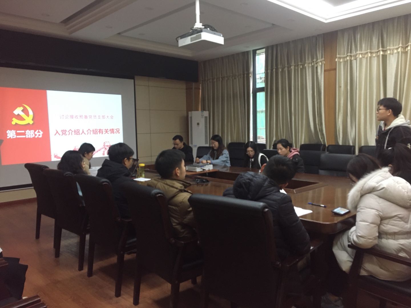 根据党支部发展党员工作计划,经上级党委预审同意,2020年12月11日下午14时,环境科学与工程系研究生第四党支部于工学部九教212会议室召开支部大会,讨论发展对象郑凡、莫宇两位同志的入党问题。同时,开展了关于党章专题学习的主题党日活动。会议应到人数31人,实到16人,其中正式党员14人,超过具有表决权的党员人数的半数,符合规定人数。