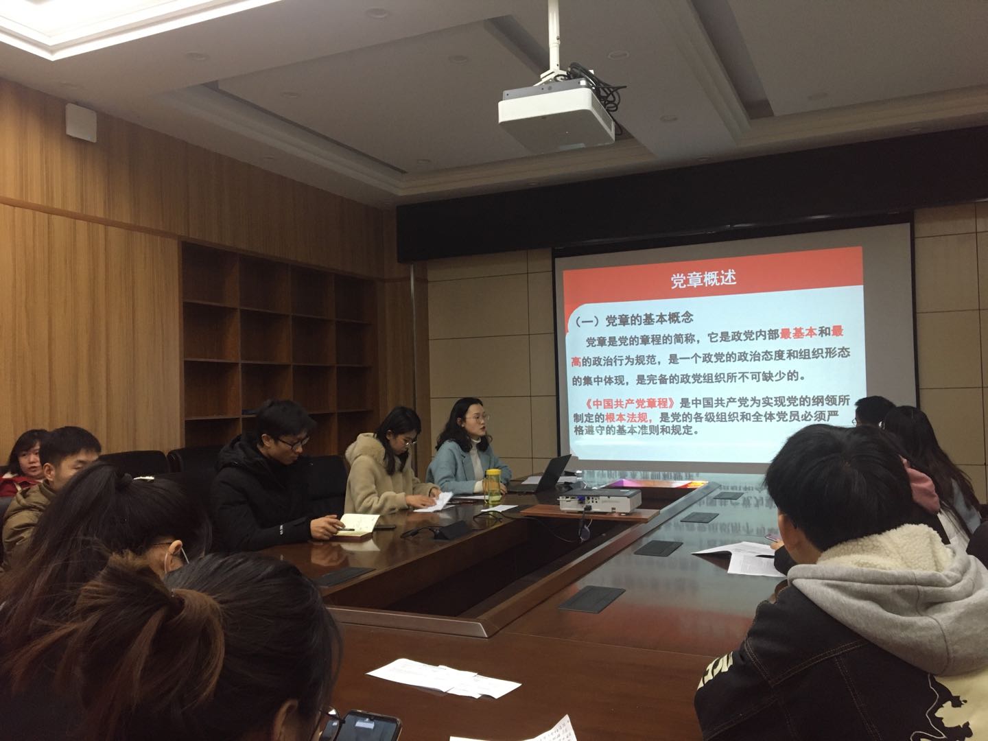 接收预备党员会议结束后,支部召开了党章专题学习主题党日活动,由支部纪律委员雷晓薇向大家主讲。雷晓薇同志自建党初期的党章体系开始讲起,依次将中共七大、中共九大、中共十二大、中共十九大党章体系向大家做了详细的介绍,明确说明了党的十九届中央政治局第一次会议的要求“要认真研读党的十九大报告和党章”,并对党的十九大以来党章框架结构的调整,总纲、党章条文的部分修改,以及党章修改的主要特点进行了着重介绍。