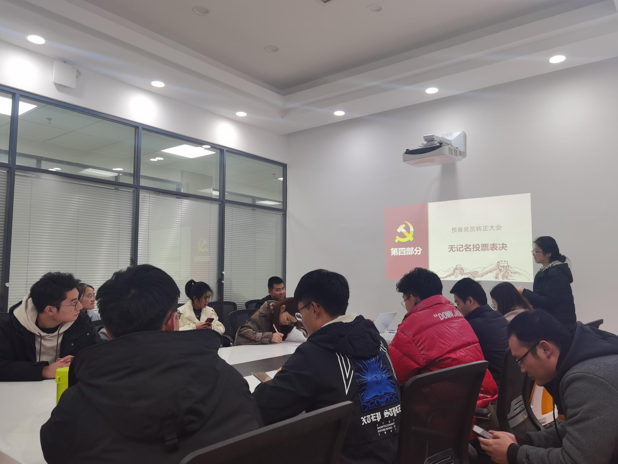 预备党员转正支部大会严格按照党组织预备党员转正大会程序,主要分为以下五个流程: (1)预备党员汇报思想情况;(2)培养考察人汇报考察情况;(3)与会正式党员发表意见; (4)无记名投票表决;(5)转正党员入党宣誓。大会开始,两位预备党员李瑞梦,陈涵肖同志分别向党组织汇报了其一年来的思想情况。随后,每位同志的培养考察人汇报了他们在考察期内培养考察情况及在校表现情况。其中,陈涵肖同志的培养考察人由于工作原因以视频的形式参与 了培养考察汇报。党支部书记樊晓辉同志代表支委向大会报告其现实表现的考察情况以及综合政 治材料审查情况。与会的每位党员同志对以上两位预备党员是否符合正式党员发表了意见。由吕腾同志和何德敏同志担任计票人和监票人,以正式党员无记名投票方式对预备党员进行投票并现 场逐一公布投票结果。投票结果表明:同意 12 票,反对 0 票,弃权 0 票。经一致表决,李瑞梦, 陈涵肖两位同志得到支部大会的一致认可,同意按期转为正式党员。纪律委员庞达带领两位同志 进行入党宣誓。最后支部书记樊晓辉同志进行了支部大会总结。本次资环学院环境系第五党支部 讨论接收预备党员暨预备党员转正支部大会圆满结束,希望各位同志能够齐心协力,把支部建设的更好,并在以后的学习工作生活中不忘初心、牢记使命,砥砺前行。