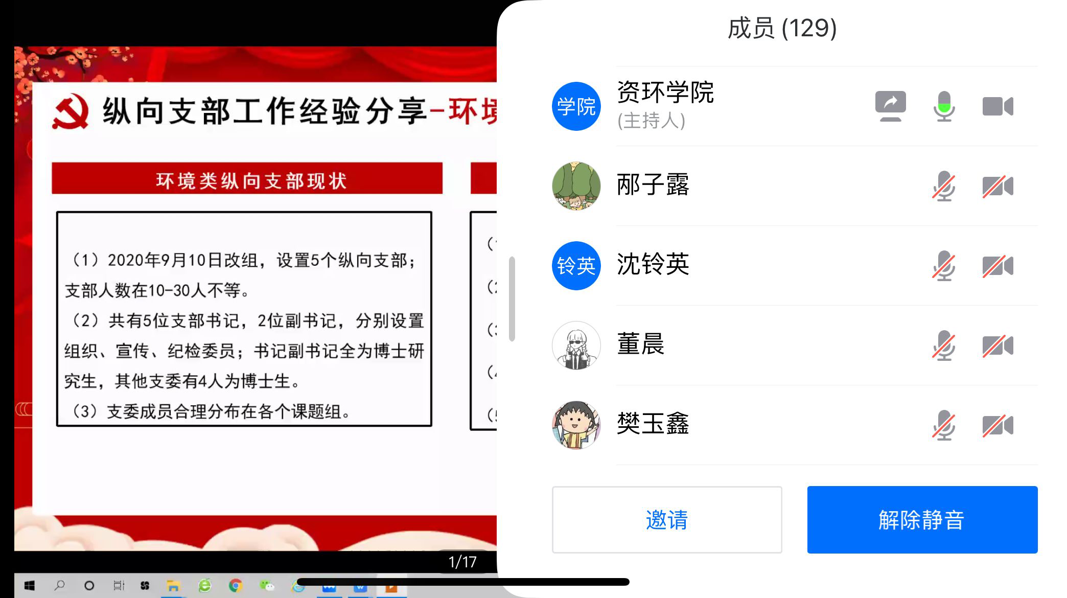 接下来,党支部书记联席会主席王豪杰分享了环境类纵向支部的工作经验和党支书联席会基本情况。他建议支部建设和联席会工作要重点关注党支部内工作气氛、支部工作着力点、合理合规的工作流程、支委的职责划分以及支部凝聚力建设等方面。