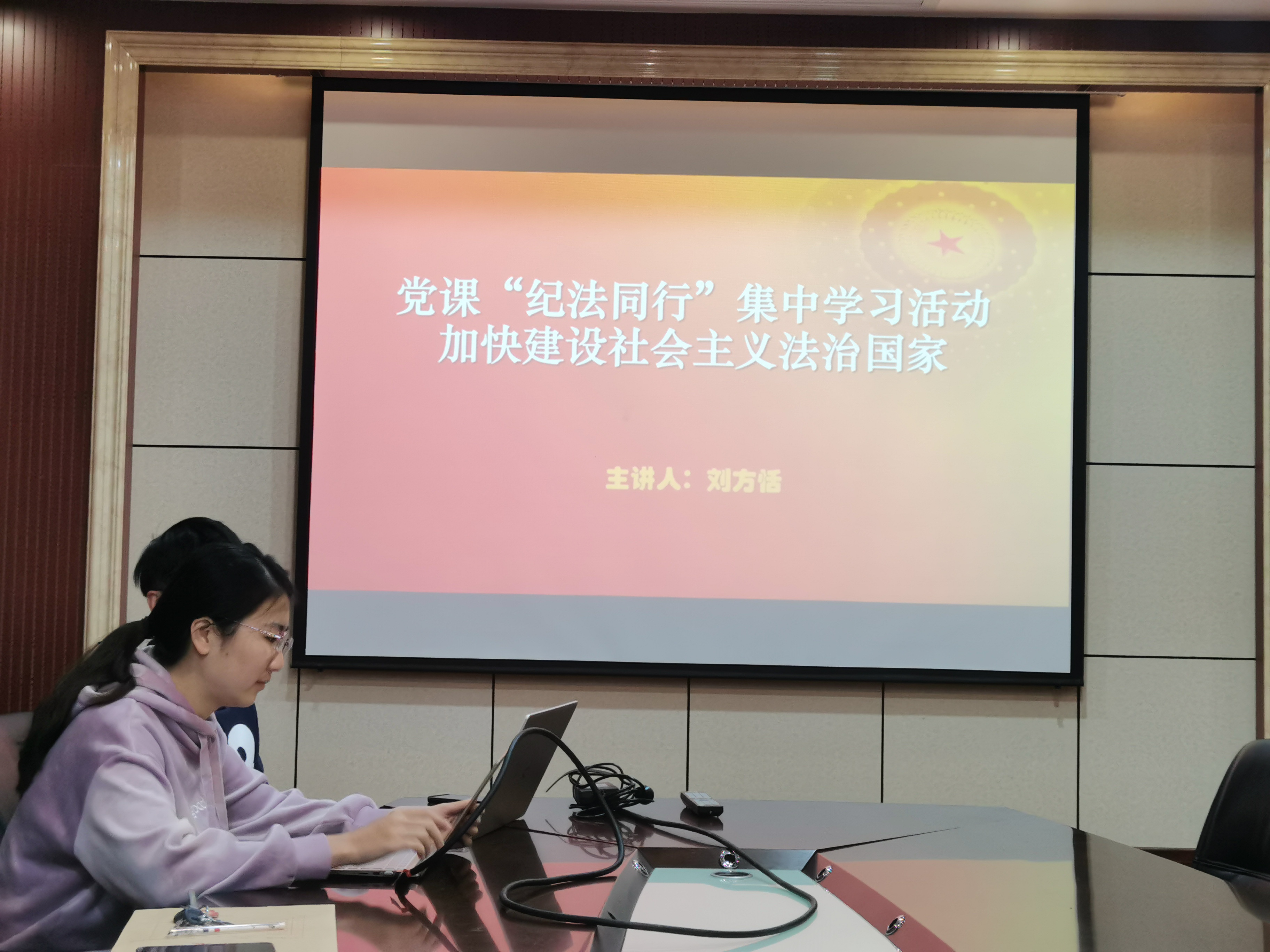 会议第一项,由党支部副书记刘方恬同志讲解“‘纪法同行’集中学习活动,加快建设社会主义法治国家”专题党课,支部同志们学习《中国共产党纪律处分条例》、《中华人民共和国监察法》、《中华人民共和国公职人员政务处分法》等党内法规和国家法律法规,积极讨论刘方恬同志提出的相关思考问题。