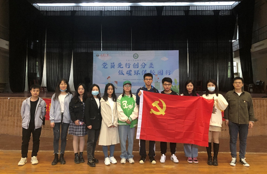 活动伊始,在场党员和预备党员在庄严的党旗下重温入党誓词,追忆入党初心。地理信息与地图科学系研究生第六党支部书记、党员代表郑传帮同志宣读了《垃圾分类倡议书》,并带领大家在横幅上签字,表达了在低碳环保和绿色校园建设中“党员先行”的决心。