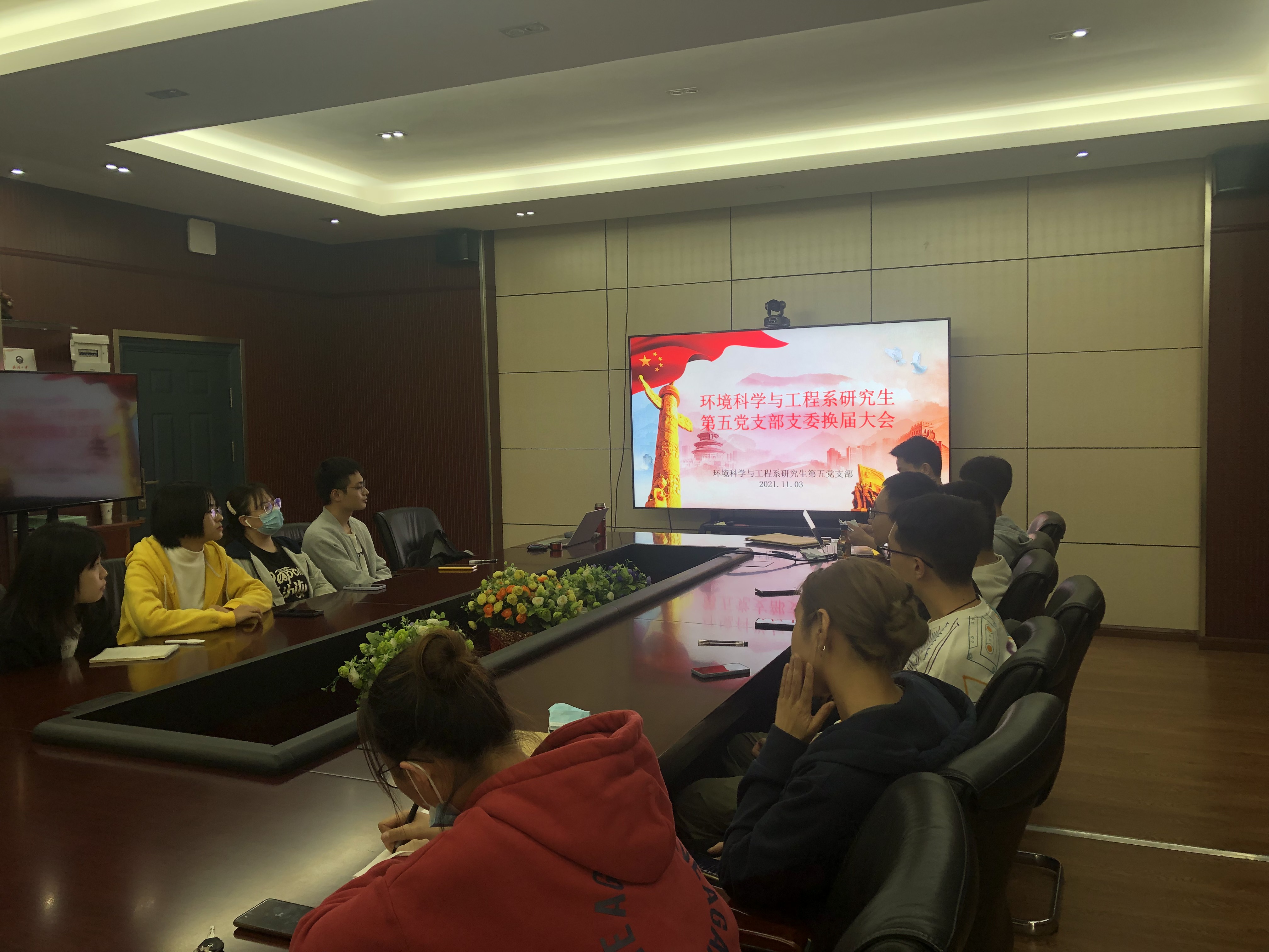 环境科学与工程系研究生第五党支部预备党员转正大会暨支委换届大会于院办320会议室召开。本次会议由支部书记樊晓辉同志主持,会议应到正式党员17人,预备党员11人,实到正式党员15人,预备党员8人。