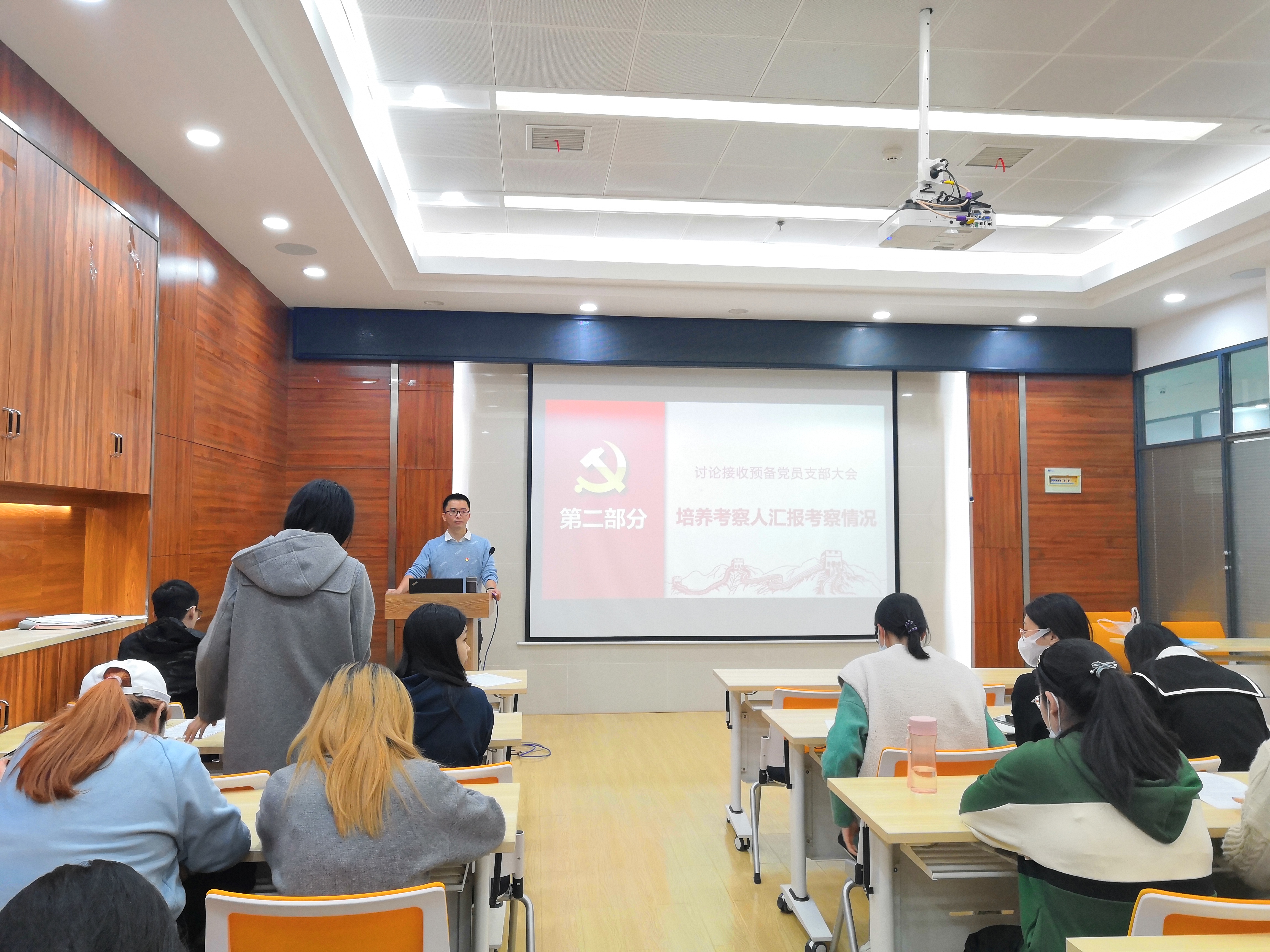 (二)会议第二项,培养考察人汇报考察情况。董玥、邵丽冰、张舒瑾三名同志的培养考察人分别介绍了三位同志在思想上、学习上和生活上的情况,对其是否具备入党条件发表了自己的意见。
