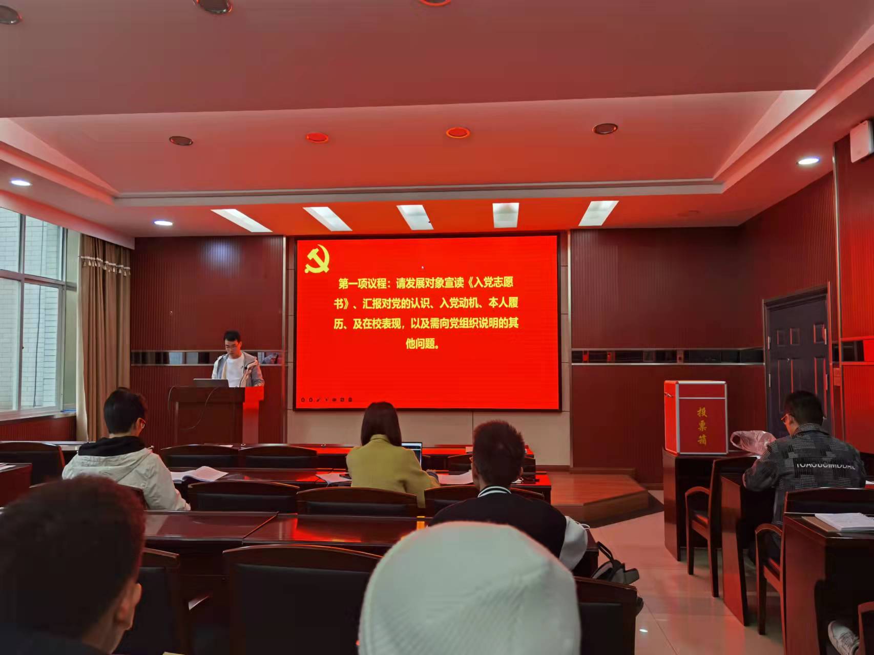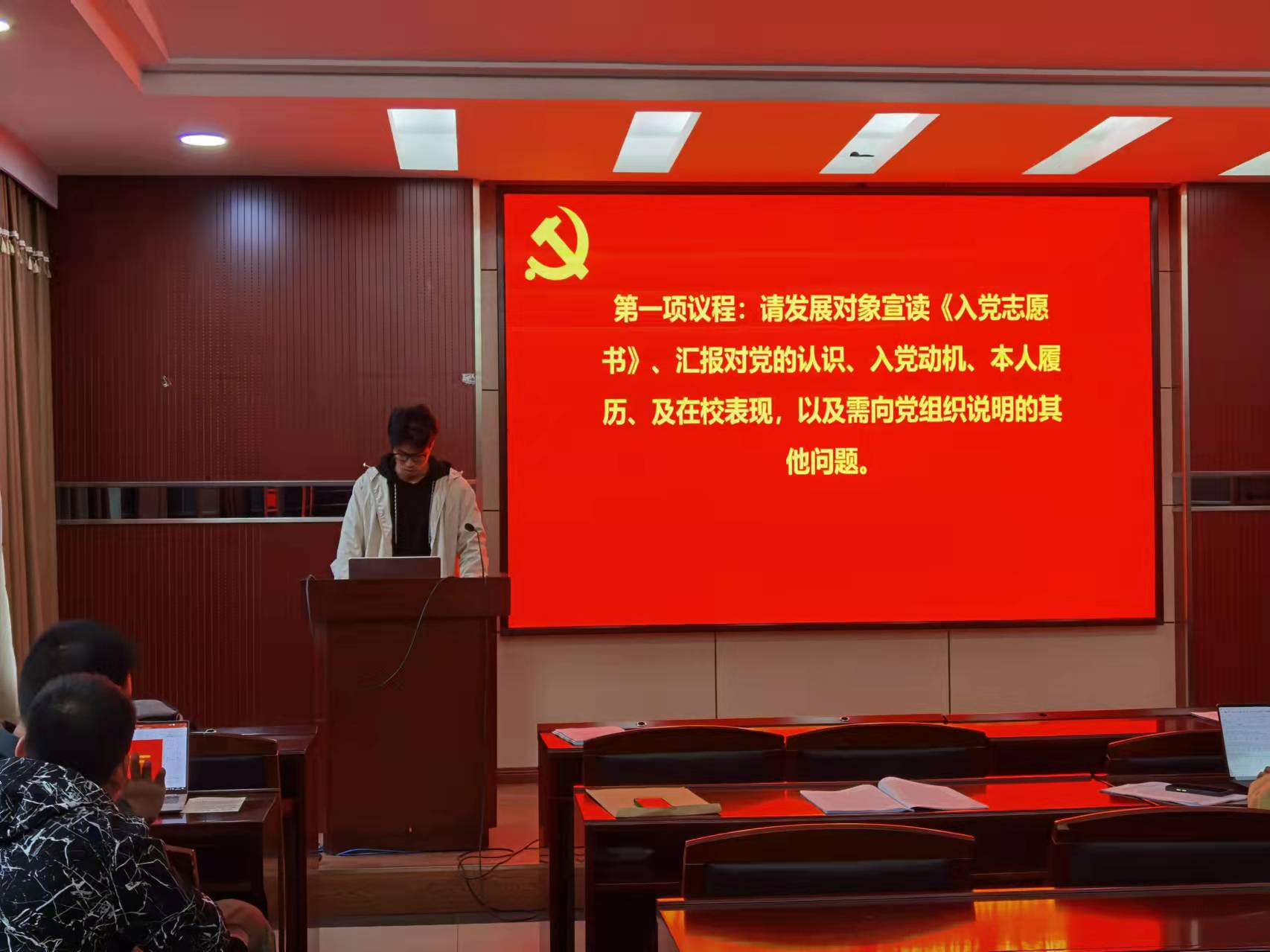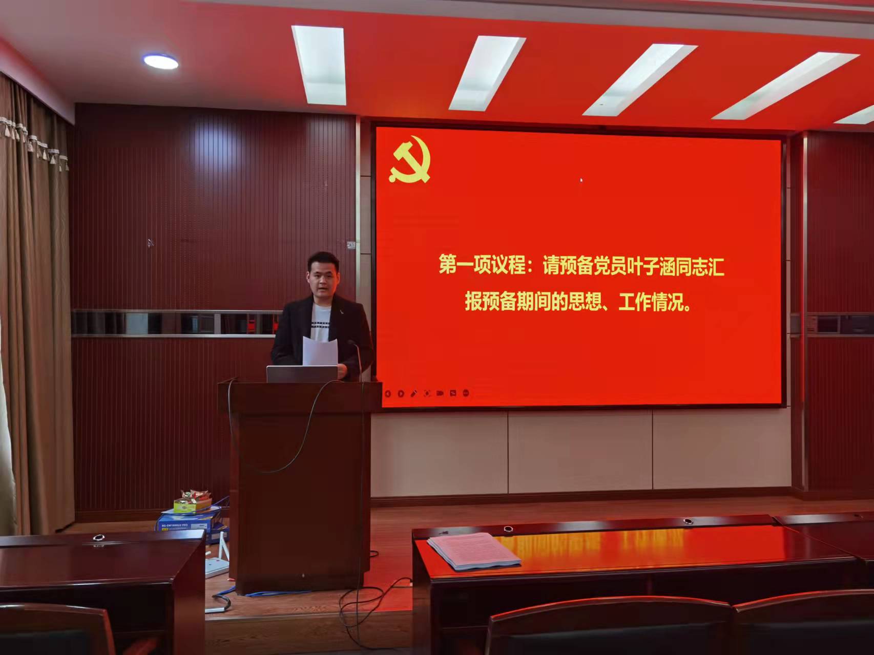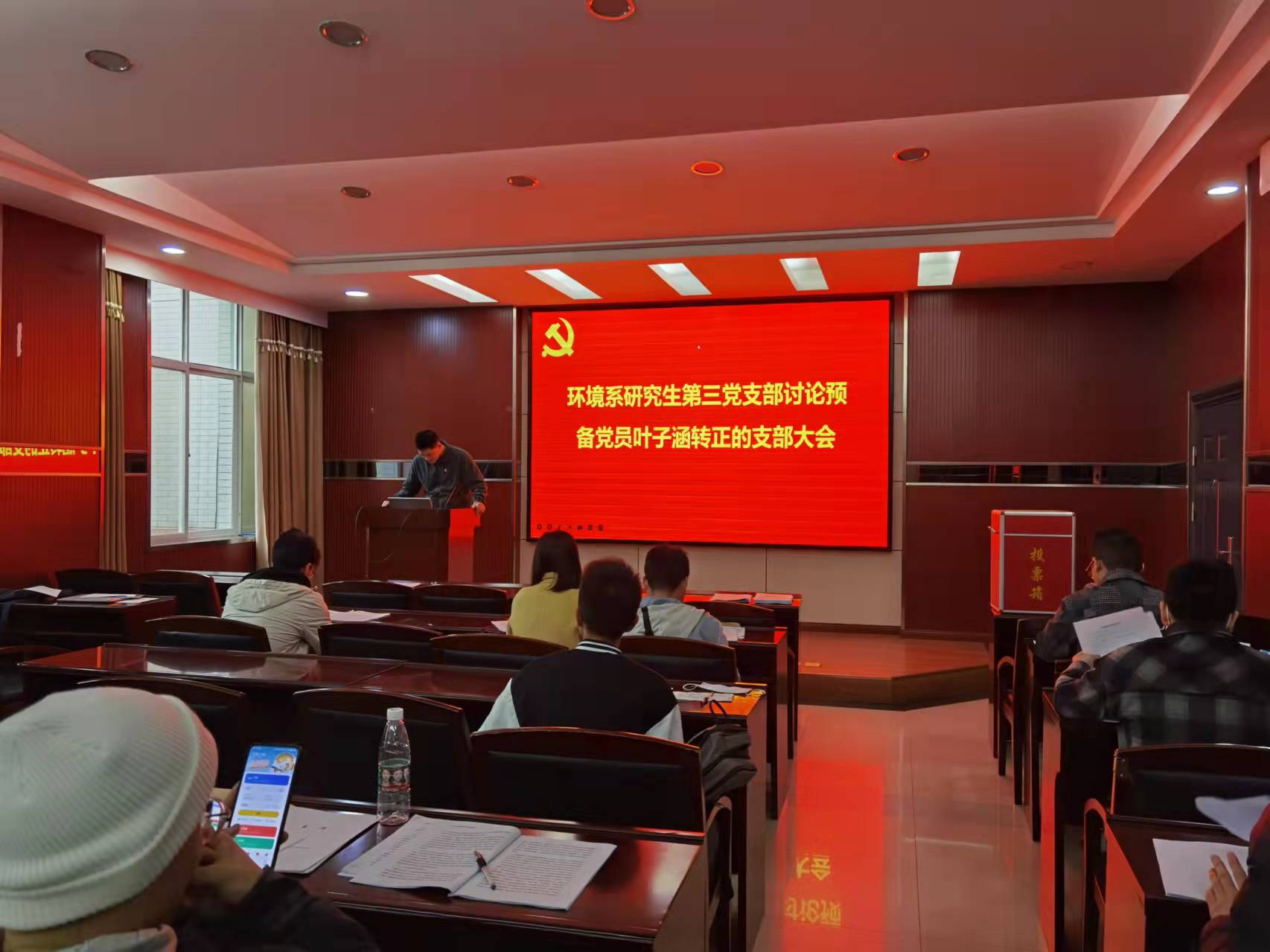 首先进行环境科学与工程系研究生第三党支部讨论预备党员叶子涵同志转正的支部大会。