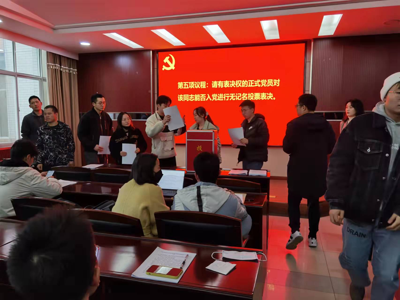 然后进行环境科学与工程系研究生第三党支部讨论接收马永松、谢巍、程康为预备党员的支部大会。