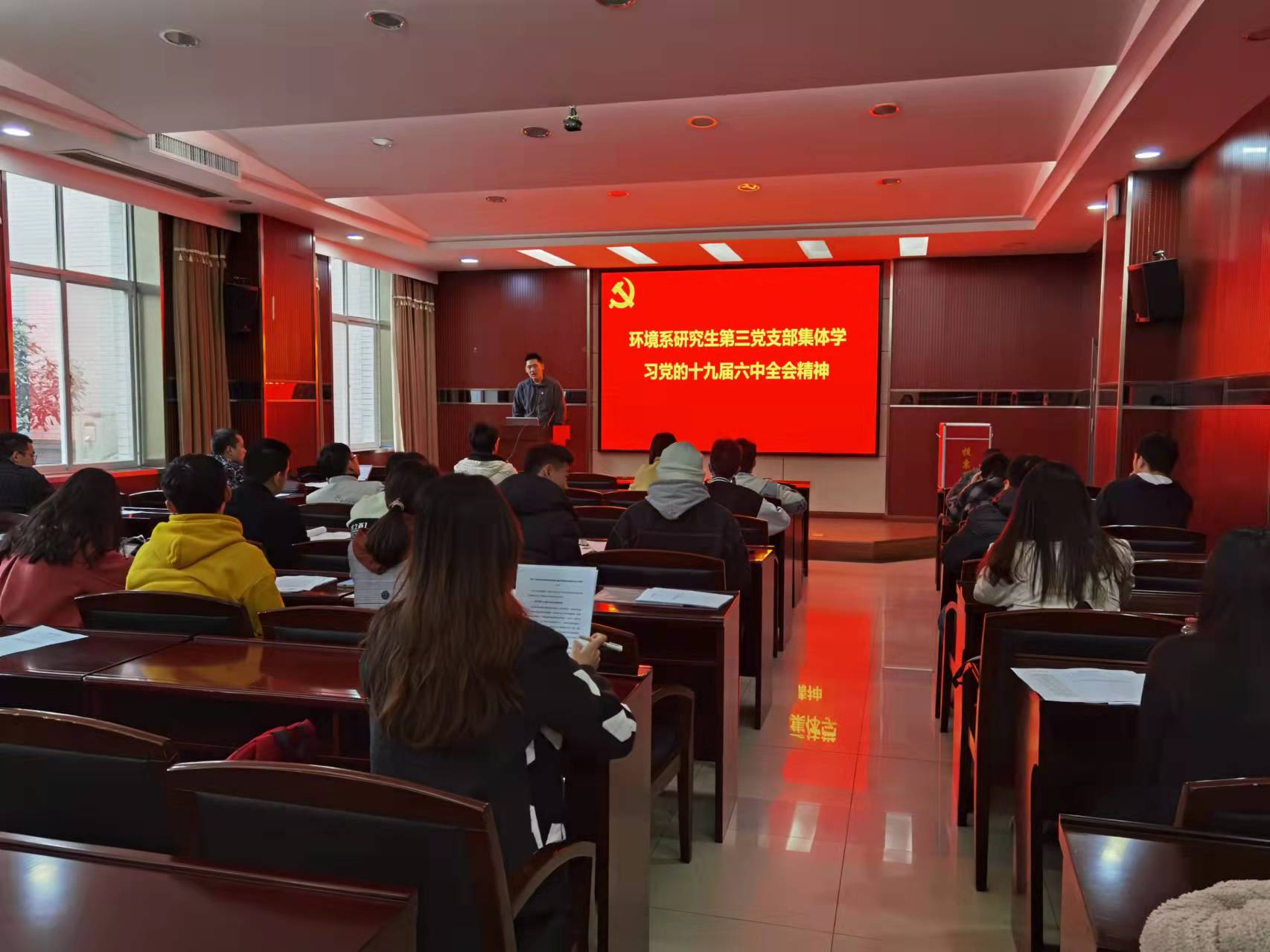 环境科学与工程系研究生第三党支部于院办220召开支部大会。本次会议由环境科学与工程系研究生第三党支部书记石昊主持,会议主要事务有以下三项:一是集体学习习近平总书记关于《中共中央关于党的百年奋斗重大成就和历史经验的决议》的说明,学习《中共中央关于党的百年奋斗重大成就和历史经验的决议》全文;二是环境科学与工程系研究生第三党支部讨论预备党员叶子涵同志转正的支部大会;三是环境科学与工程系研究生第三党支部讨论接收马永松、谢巍、程康同志为预备党员的支部大会。