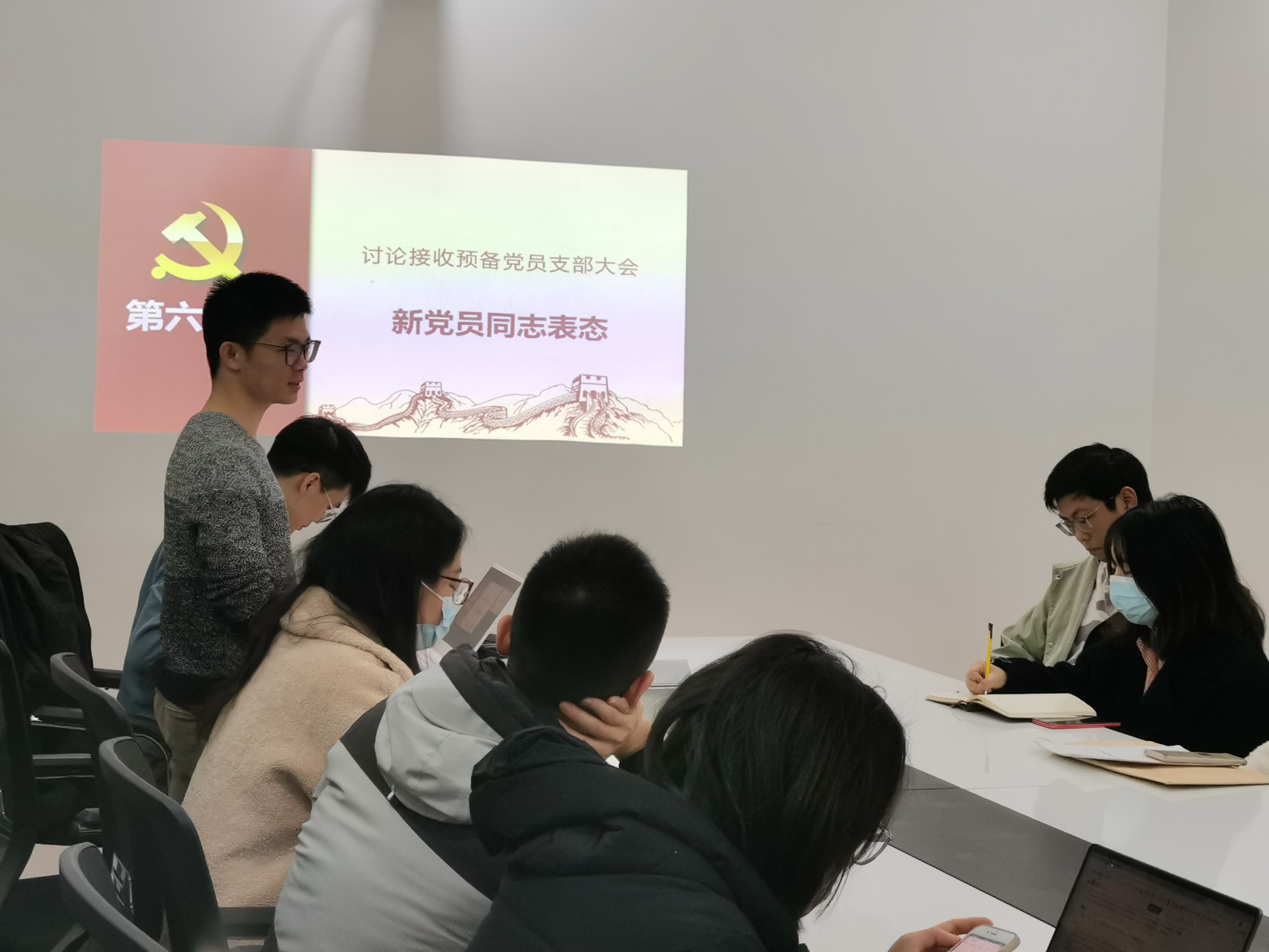 电脑城430会议室召开接收预备党员大会暨学习党的十九届六中全会精神主题党日活动。会议由党支部书记苏会钰同志主持,支部党员同志、预备党员及发展对象、入党积极分子、入党申请人参与此次会议。