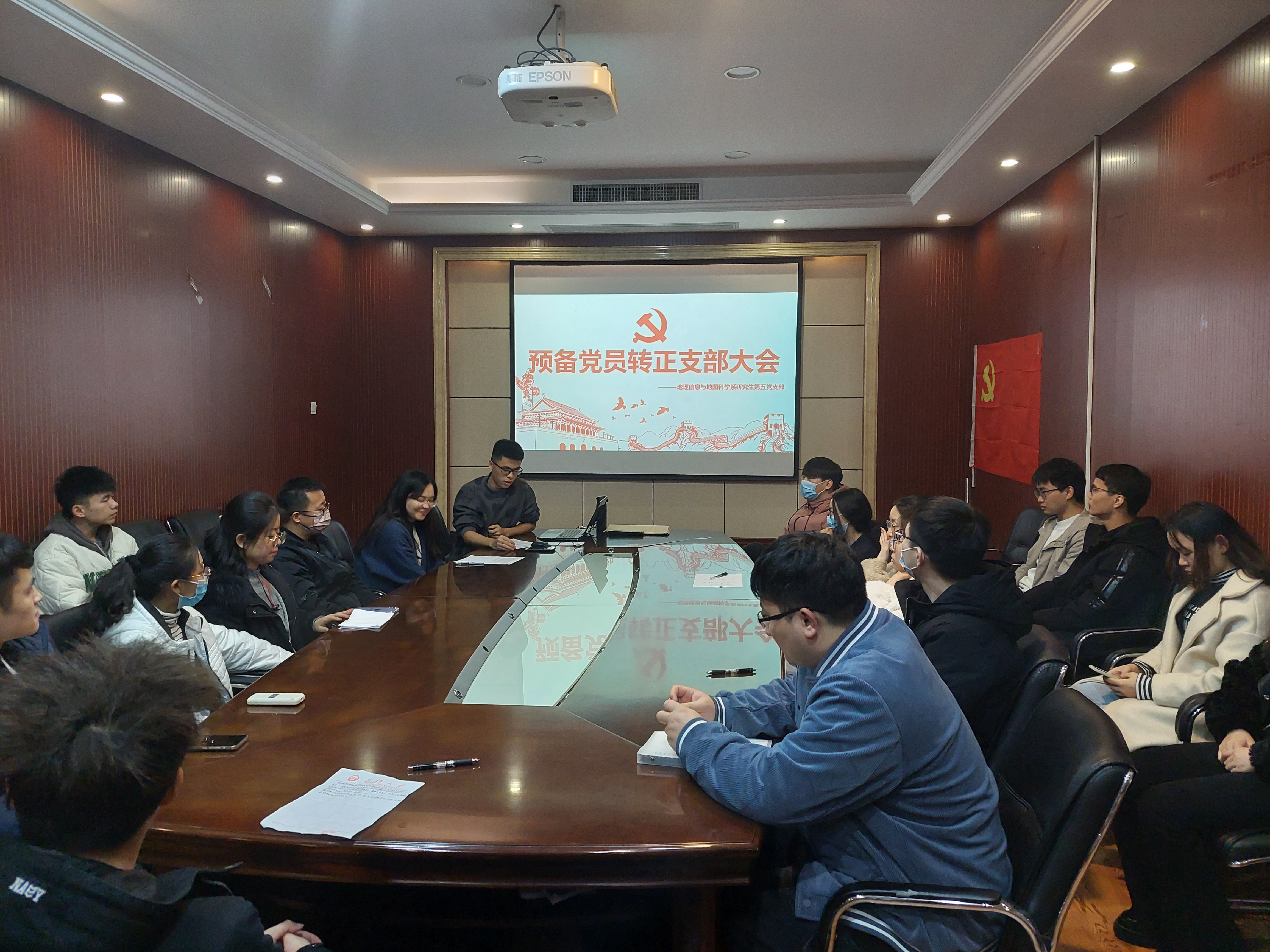 最后,武光莹同志与安佳燕同志对本次会议的表决结果表达了自己的态度,向党组织表明了自己未来必将作为正式党员起到先锋模范作用的决心与信心,并表示自己将会在将来的学习生活当中,时刻谨记自己的党员身份,全心全意为人民服务,成为一名合格的共产党员。至此,本次地理信息与地图科学系研究生第五党支部预备党员转正大会到此结束。