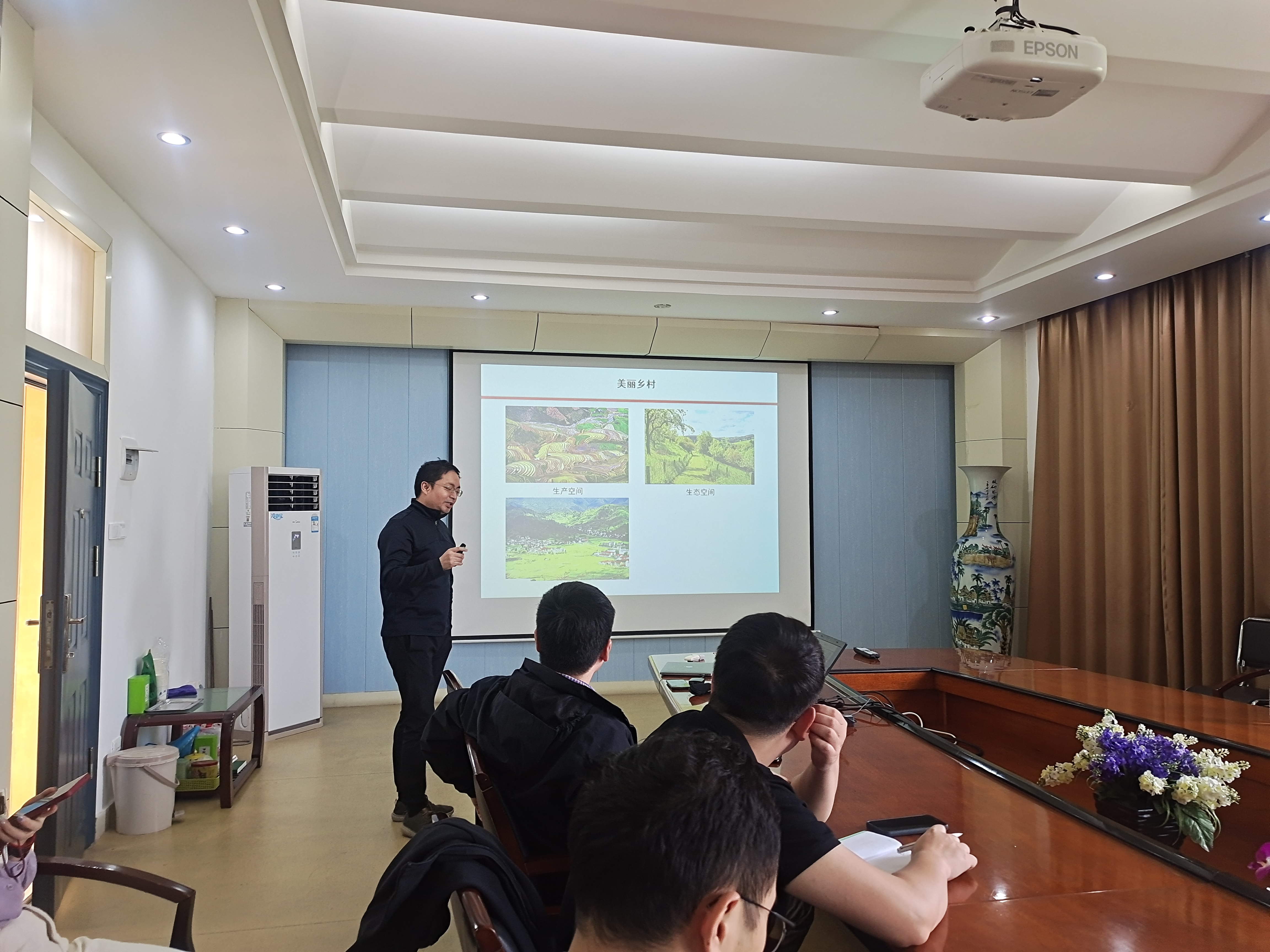 最后,在场同志与两位老师就相关主题进行了积极交流与讨论。李韩老师就乡村规划效果评价与分析对孔老师进行了提问。孔老师从政府、农民等不同主体角度进行回答,认为评价应该从现实效益与农民主观满意度方面开展。钟一鸣同志随后向刘老师询问了自然资源资产升值的测算相关问题。刘老师介绍了自然资产升值的测算现状与发展趋势,解释了GEP等重要指标内涵与作用。杨显曾同志就城市扩张与乡村振兴、乡村人减地增问题等与孔老师进行讨论。最后,徐智邦同志就合村并居对农村耕作方式的影响与孔老师展开交流。