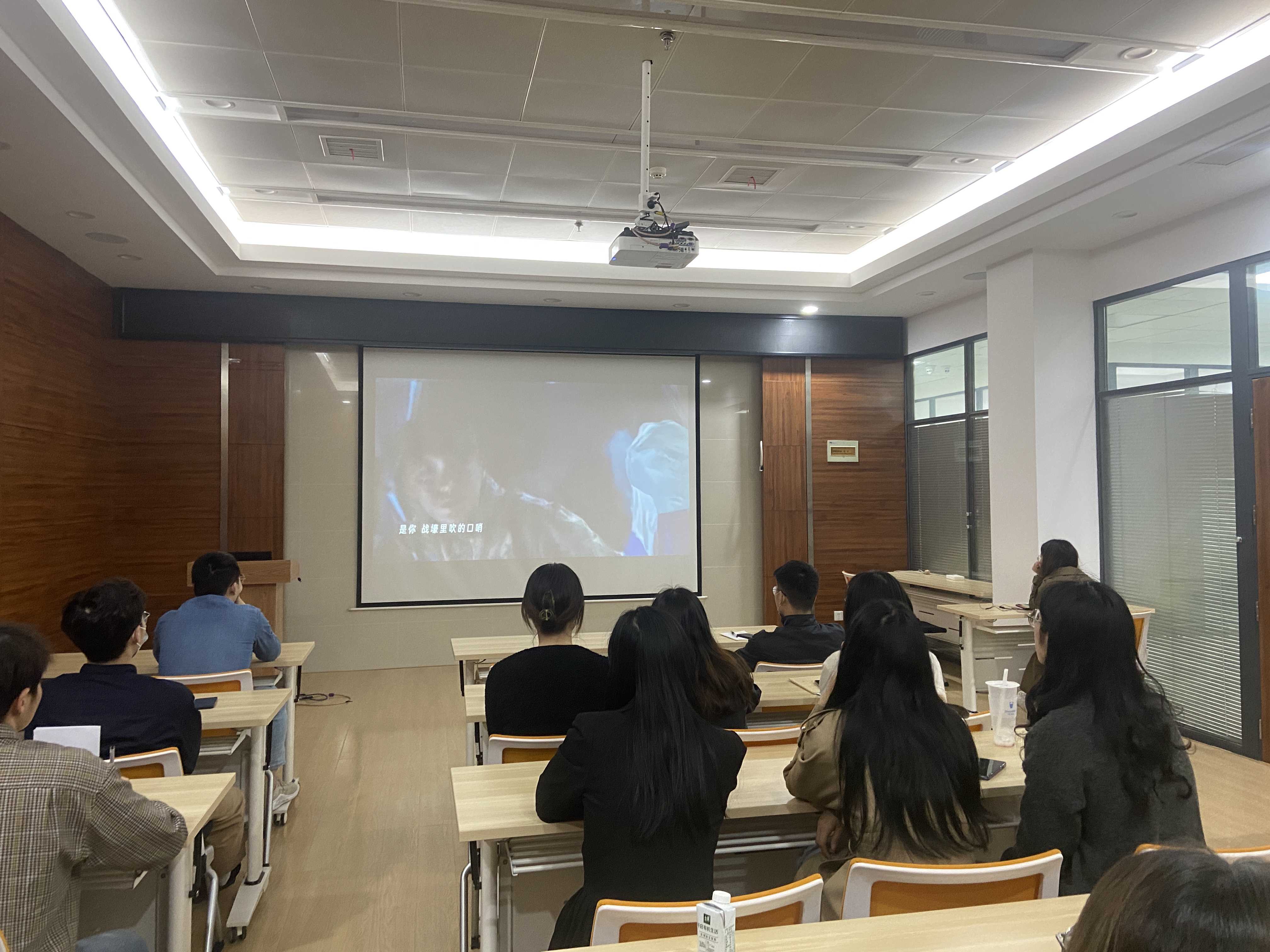 会议第二项,组织观看由共青团中央和知乎联合出品的五四微电影《重逢》。故事来源于卫国戍边牺牲的革命战友。整个影片没有高昂的口号,但诠释了当代青年血性不减,心怀大义,不怕牺牲的精神。庞惠心同志表示,一代人有一代人的历史使命,我们的祖辈、父辈解决了全国吃饭的问题,现在人人都能吃饱穿暖,那么我们这代人的使命是什么?虽然我们物质上得到保障,但是精神上是贫穷的,我们这代人的使命就是解决精神饥饿,多读书成为有思想的人,成为心中有信仰的人,成为脚下有力量的人,成为能强国逐梦的人。