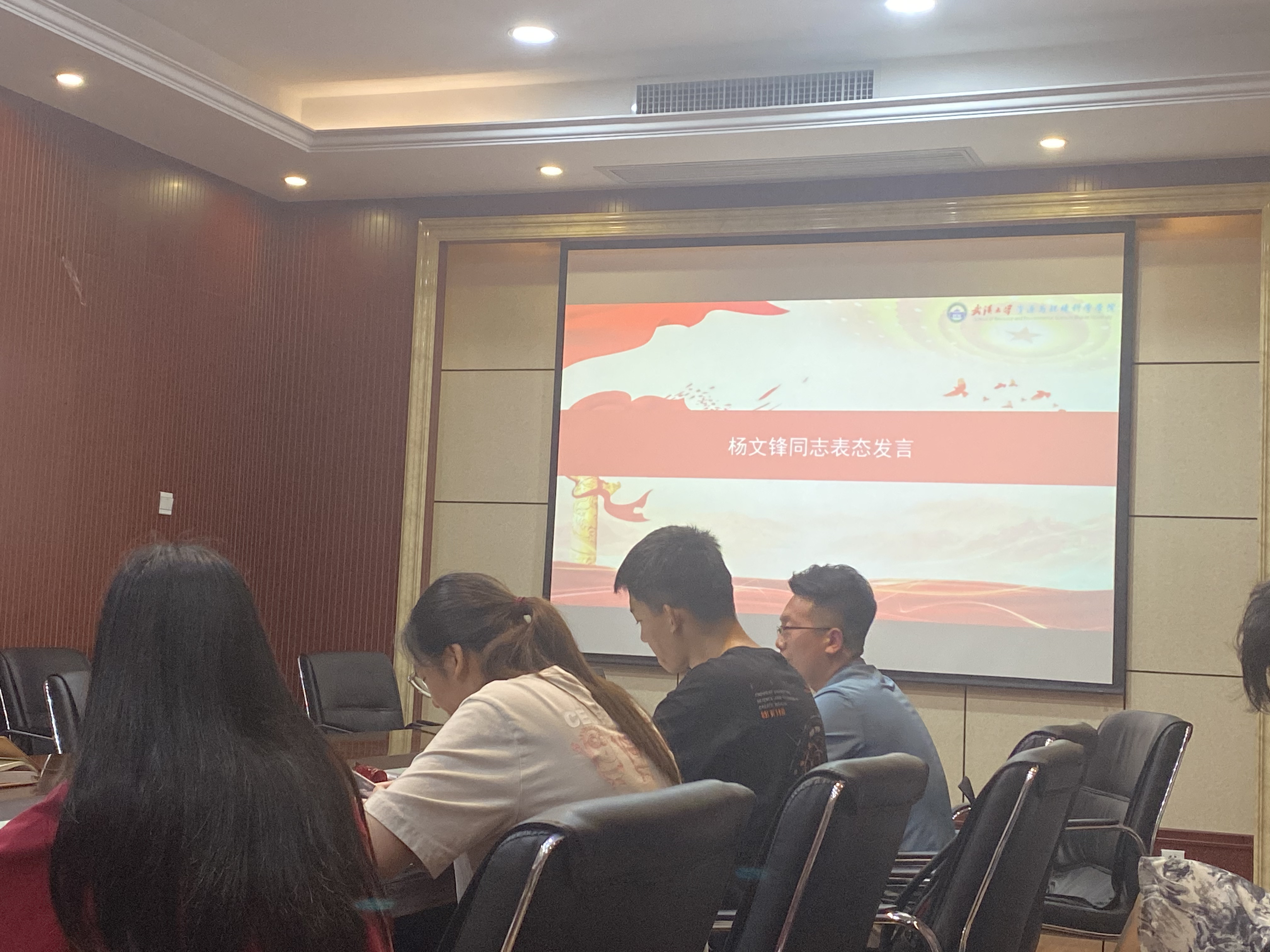 杨文锋同志分别就个人基本情况、思想发展历程、现实表现等进行了汇报。第一考察人和第二考察人分别介绍了杨文锋同志的情况并就其能否按期转正表明了意见。纪检委员张玉克同志代表支部委员会报告了杨文锋同志的审查情况。同时与会党员也就其日常表现进行补充评论。最后进行无记名投票表决,经监票人、计票人统计,无记名投票表决结果为全票一致通过杨文锋同志按期转为正式党员的申请。杨文锋同志也就其正式成为一名共产党员做出了明确表态,表示要向榜样看齐,向使命聚焦,争做德智体美劳全面发展的合格党员。