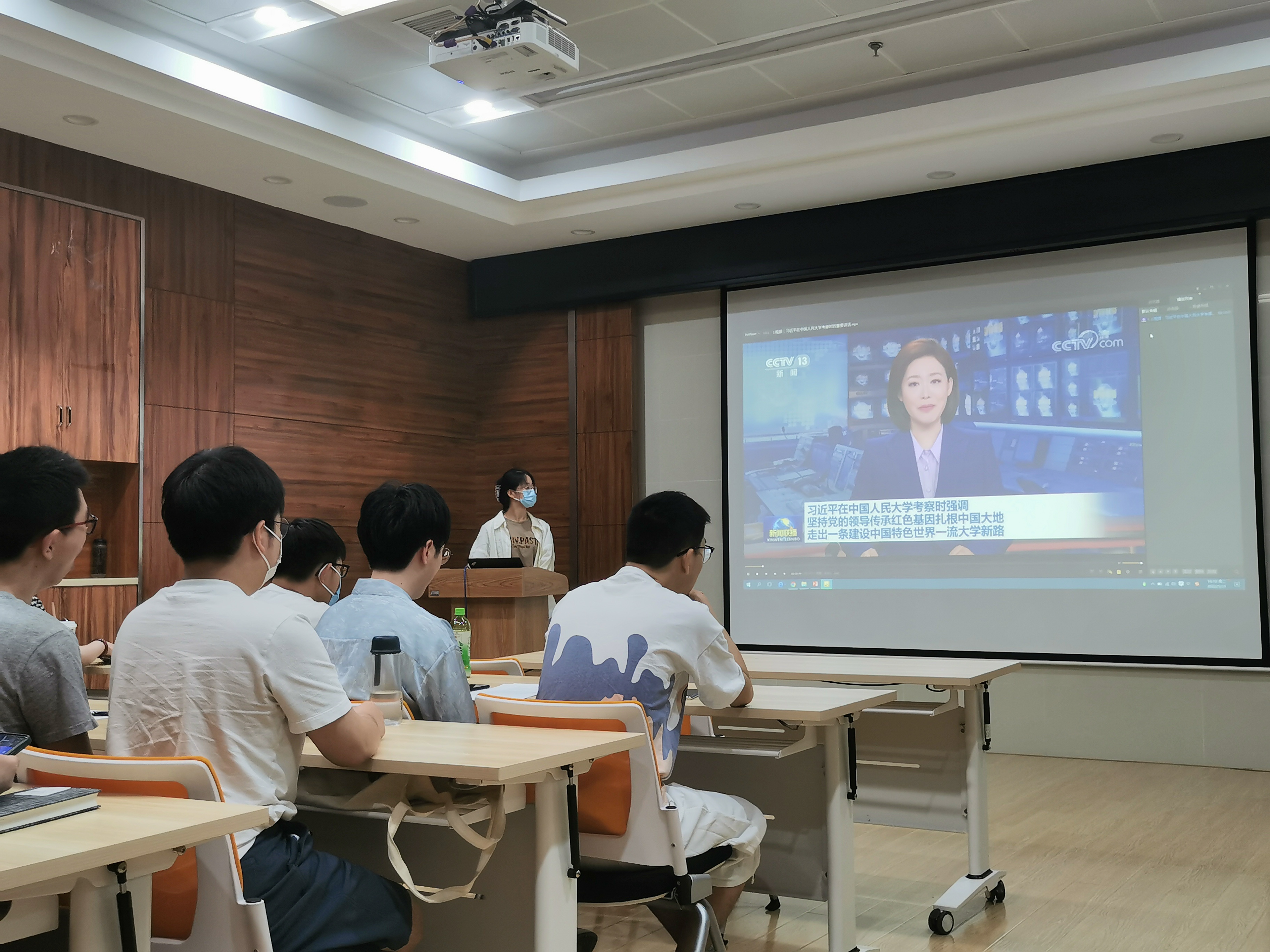 会议第一项,召开学习“习近平总书记4月25日在中国人民大学考察时重要讲话精神”的主题党日活动。首先,张梦同志介绍了五四青年节的重要意义,并引出本次党日活动的学习主题。之后,通过观看视频的方式,支部同志们认真学习了习近平总书记在考察中国人民大学时发表的重要讲话。最后,张梦同志总结了习近平总书记重点关注并强调的几个问题,并表示,支部同志们应牢记习近平总书记在中国人民大学考察调研时对全国广大青年提出的殷切希望:要牢记党的教诲,立志民族复兴,不负韶华,不负时代,不负人民,在青春的赛道上奋力奔跑,争取跑出当代青年的最好成绩!