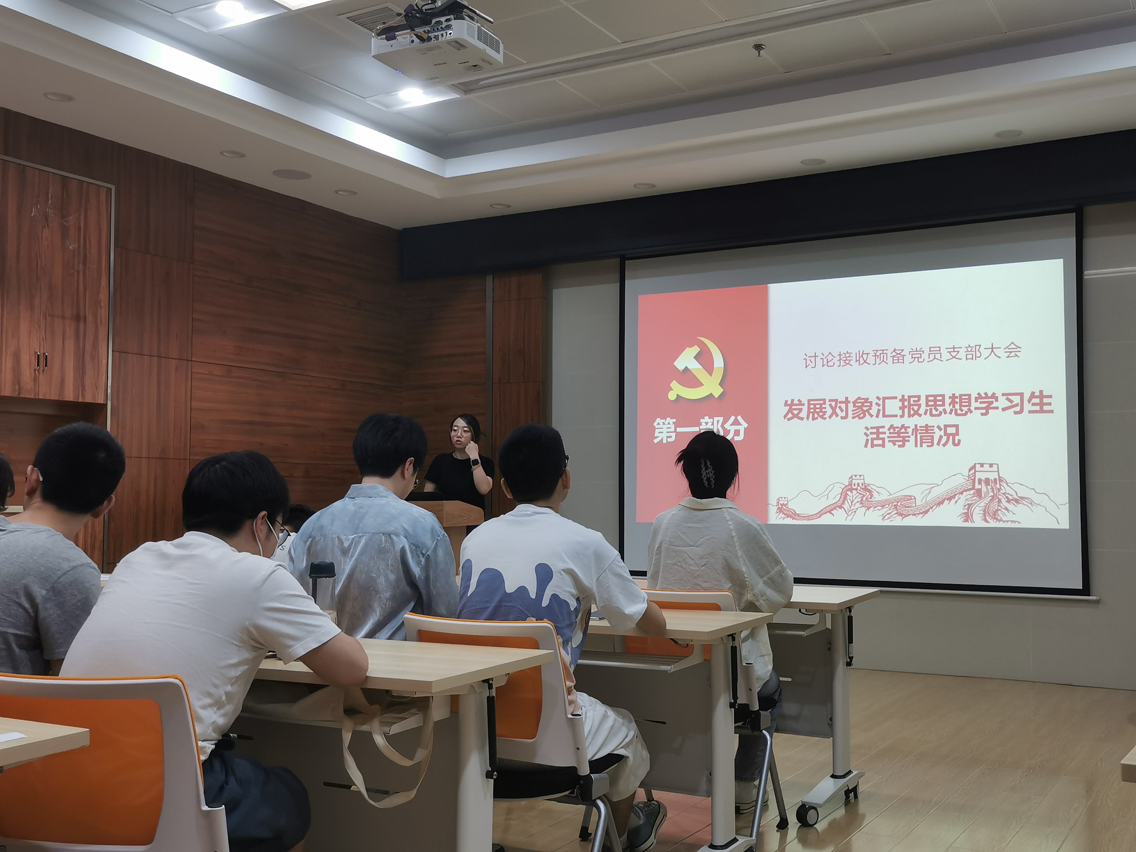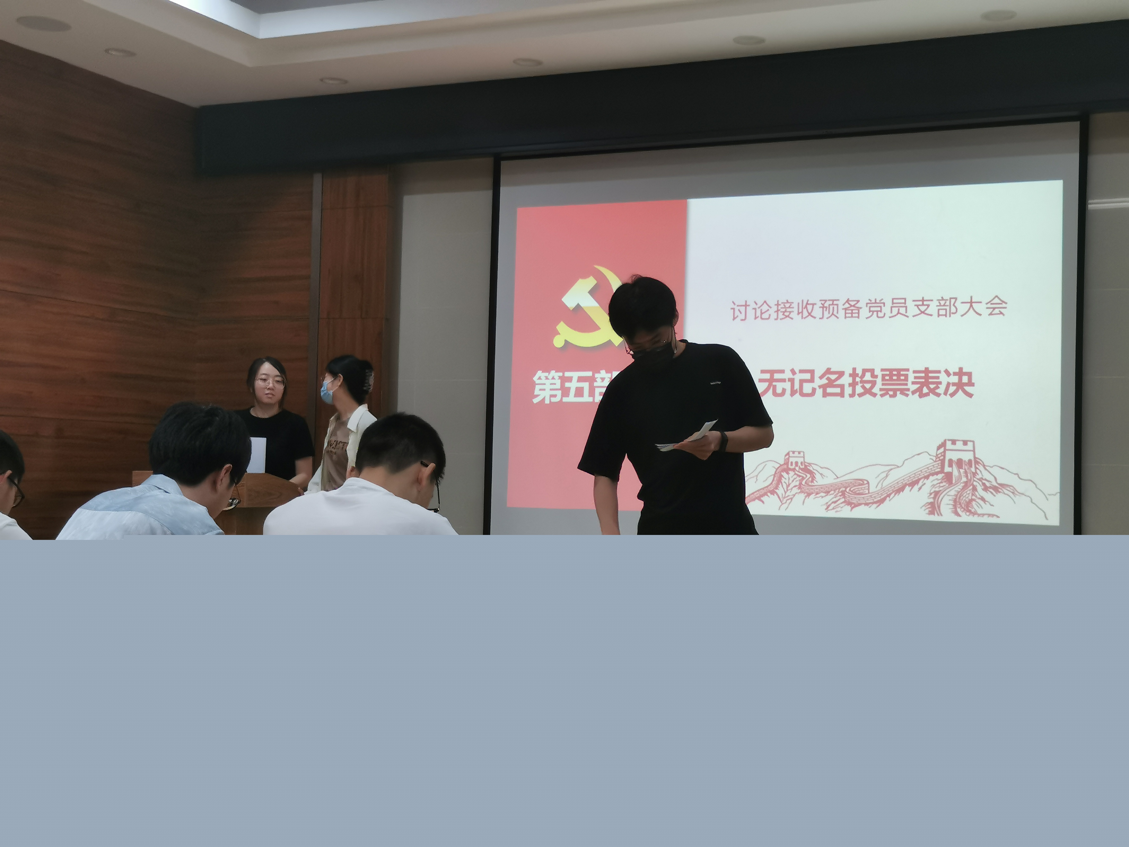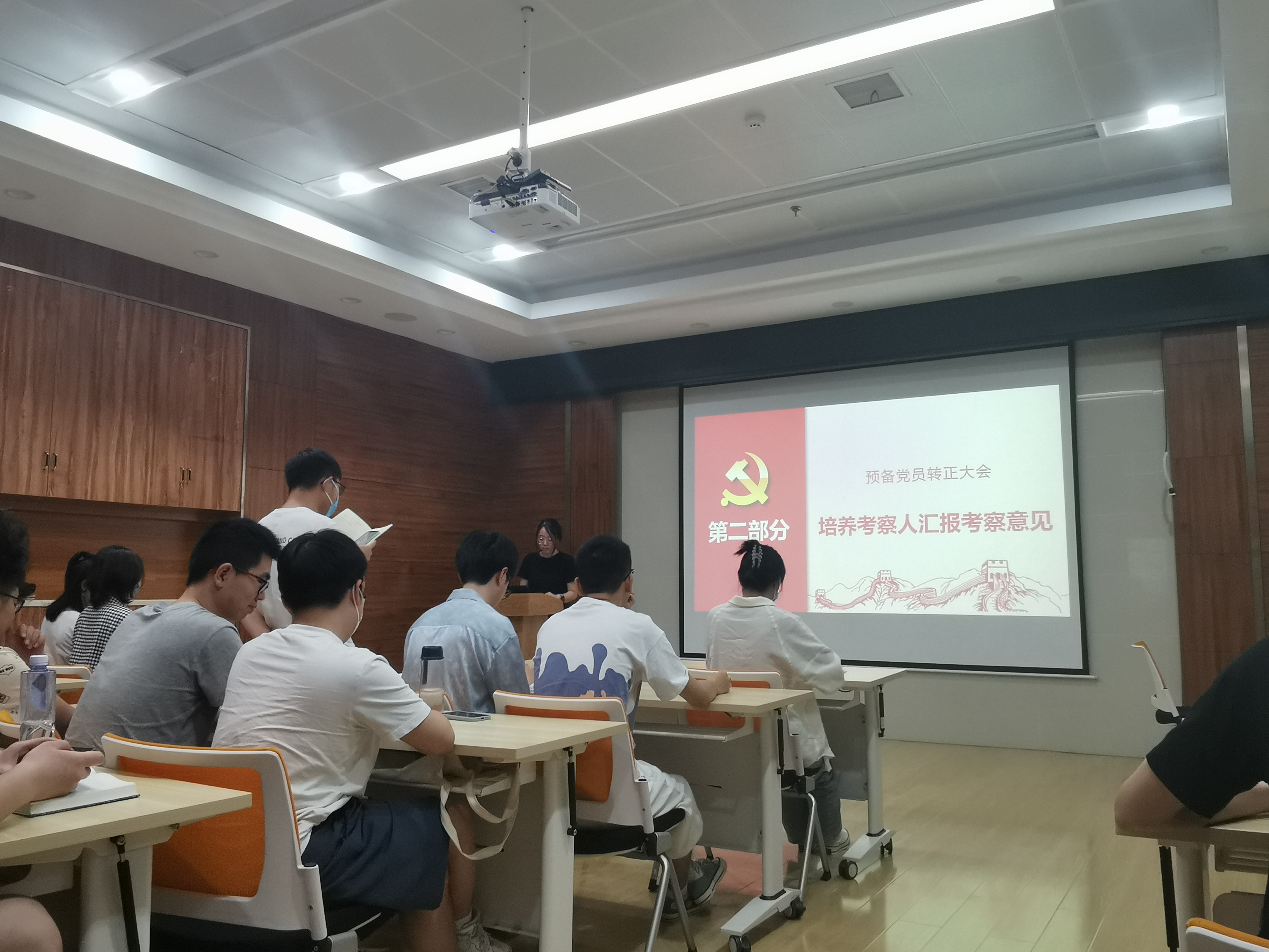 会议第二项,召开党支部大会。会议由支部副书记包雨睿同志主持。本次会议应到正式党员22名、预备党员17名,因事、因病请假8名,实到会正式党员14名、预备党员17名,有表决权的到会人数超过应到会有表决权人数的半数,符合规定人数,可以开会。