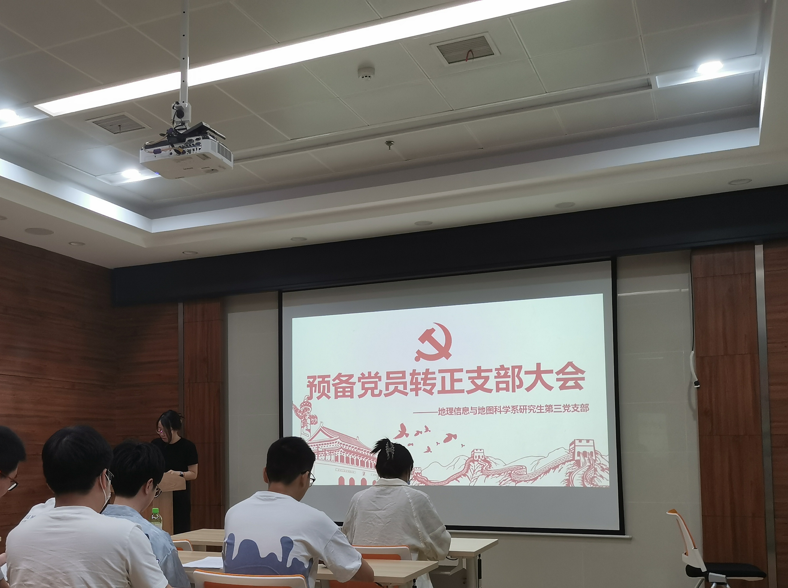 2022年5月31日下午4点,地理信息与地图科学系研究生第三党支部于电脑城429会议室召开主题党日活动暨党支部大会,会议由支部书记张梦同志主持。会议主要讨论关于廖成、韩子璇、黄谦、周超、罗运五位同志的转正问题和冯雨晴同志的入党问题。