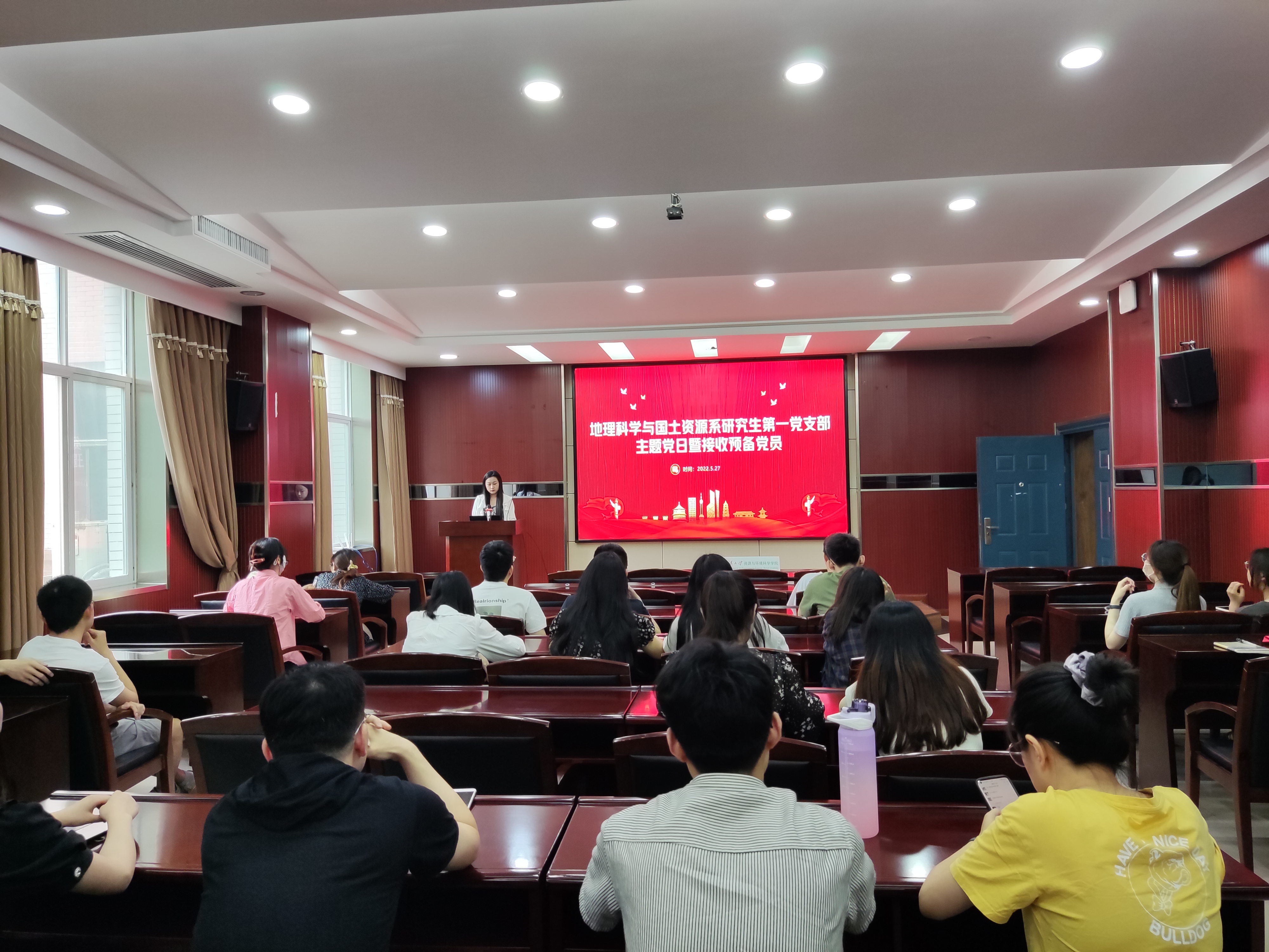 2022年5月27日14:30,地理科学与国土资源系研究生第一党支部于院办220召开主题党日活动暨接受预备党员支部大会。本次会议由支部书记庞惠心主持。