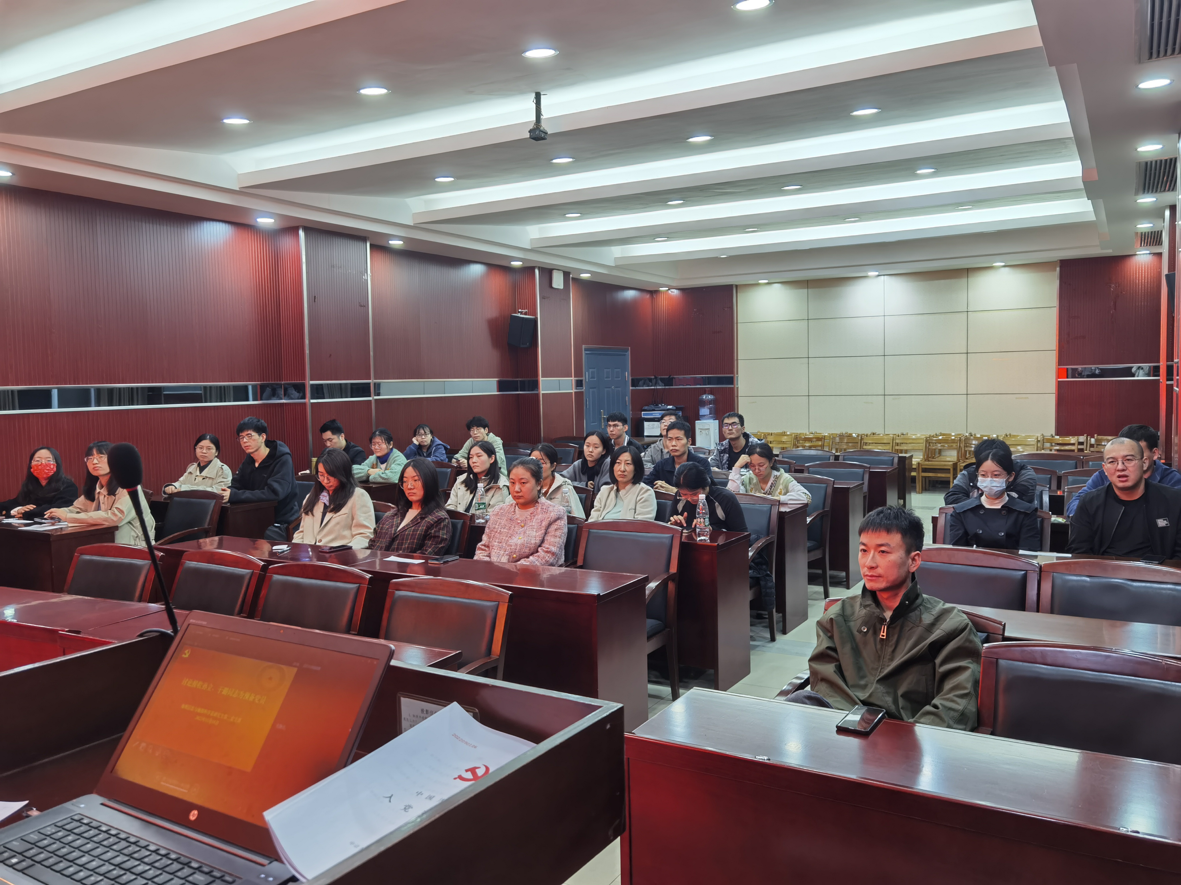 220会议室召开接收预备党员支部大会。本次会议由党支部书记蒋跃文同志主持。支部党员、发展对象和入党积极分子参与此次会议。