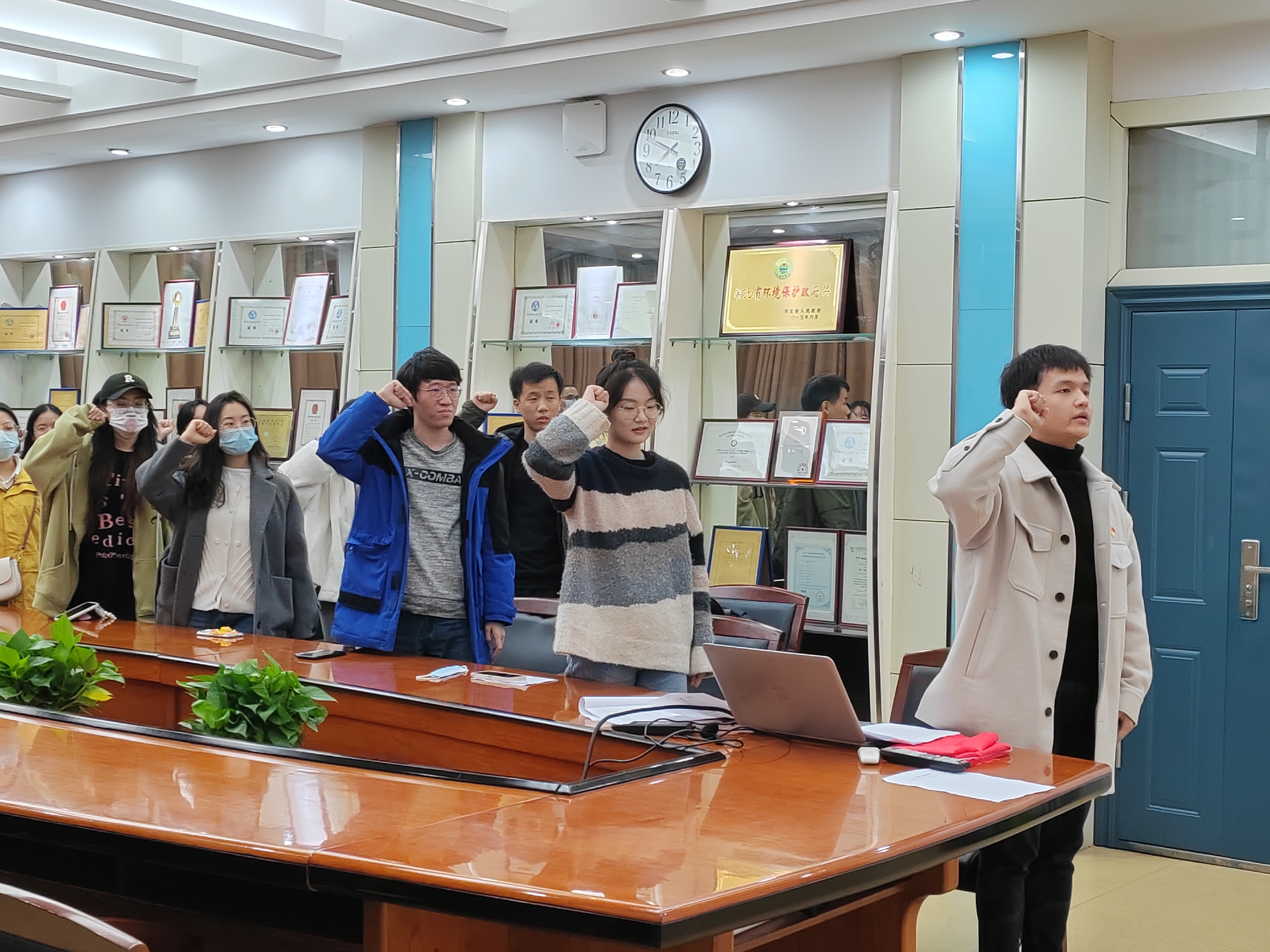 最后,靳铭同志带领全体同志重温入党誓词。铮铮誓言,久久萦绕。