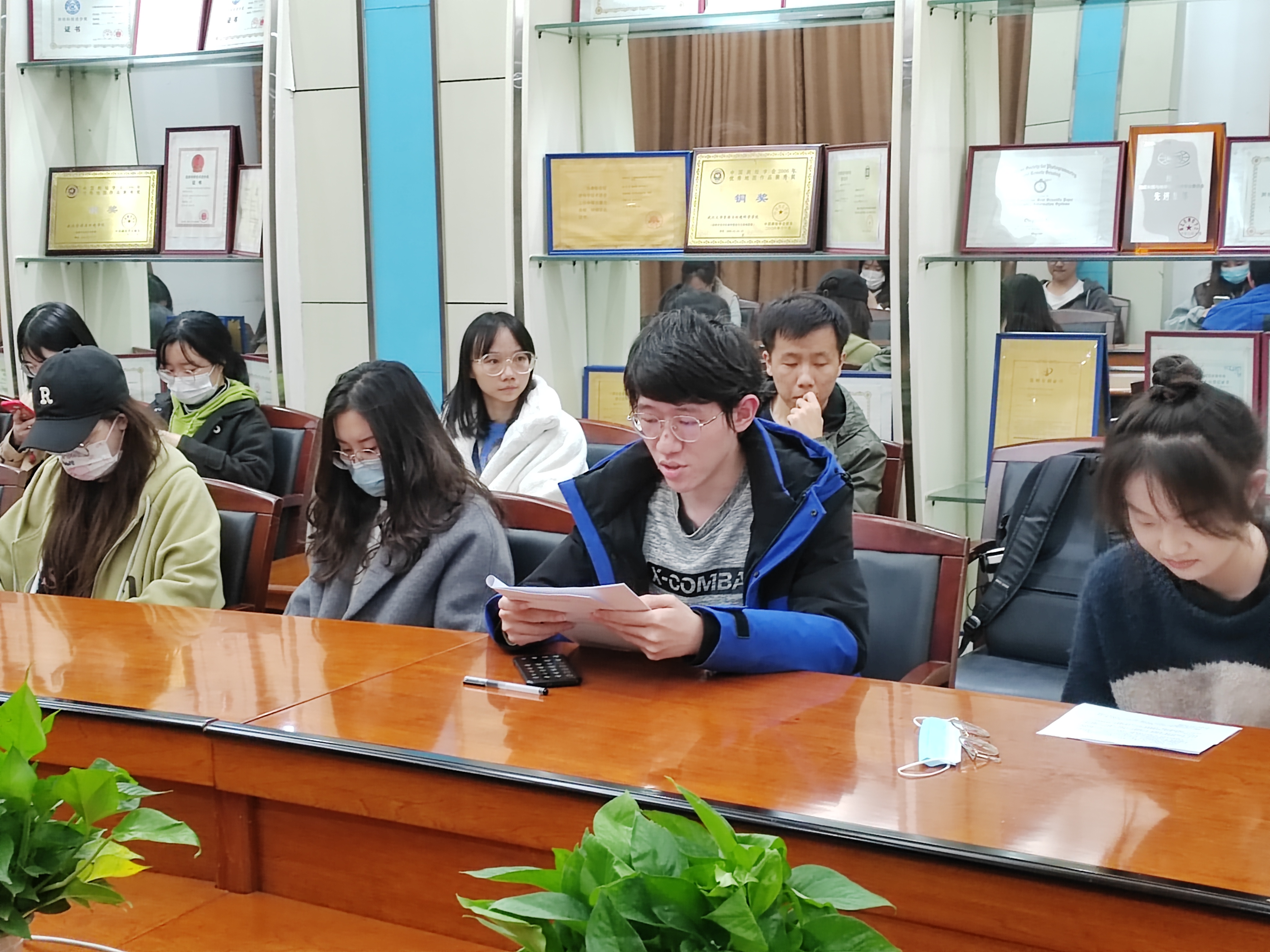 会议第一项由发展对象程宇恒同志汇报对党的认识、入党动机、本人履历、家庭成员和主要社会关系情况、现实表现等有关情况。程宇恒同志表示,在校期间,自己扎根专业,踏实学习,始终用合格党员的标准要求自己,努力提升自己的党性修为,不断向党组织靠拢。