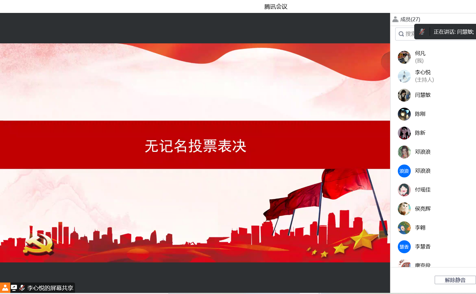 2022年12月13日19:30,环境科学与工程系研究生第二党支部召开预备党员转正大会,受疫情影响会议采用线上腾讯会议形式进行。本次会议应到正式党员20名、预备党员6名,因事、因病请假 0 名,实到会正式党员 20 名、预备党员 6 名,有表决权的到会人数超过应到会有表决权人数的半数,符合规定人数。