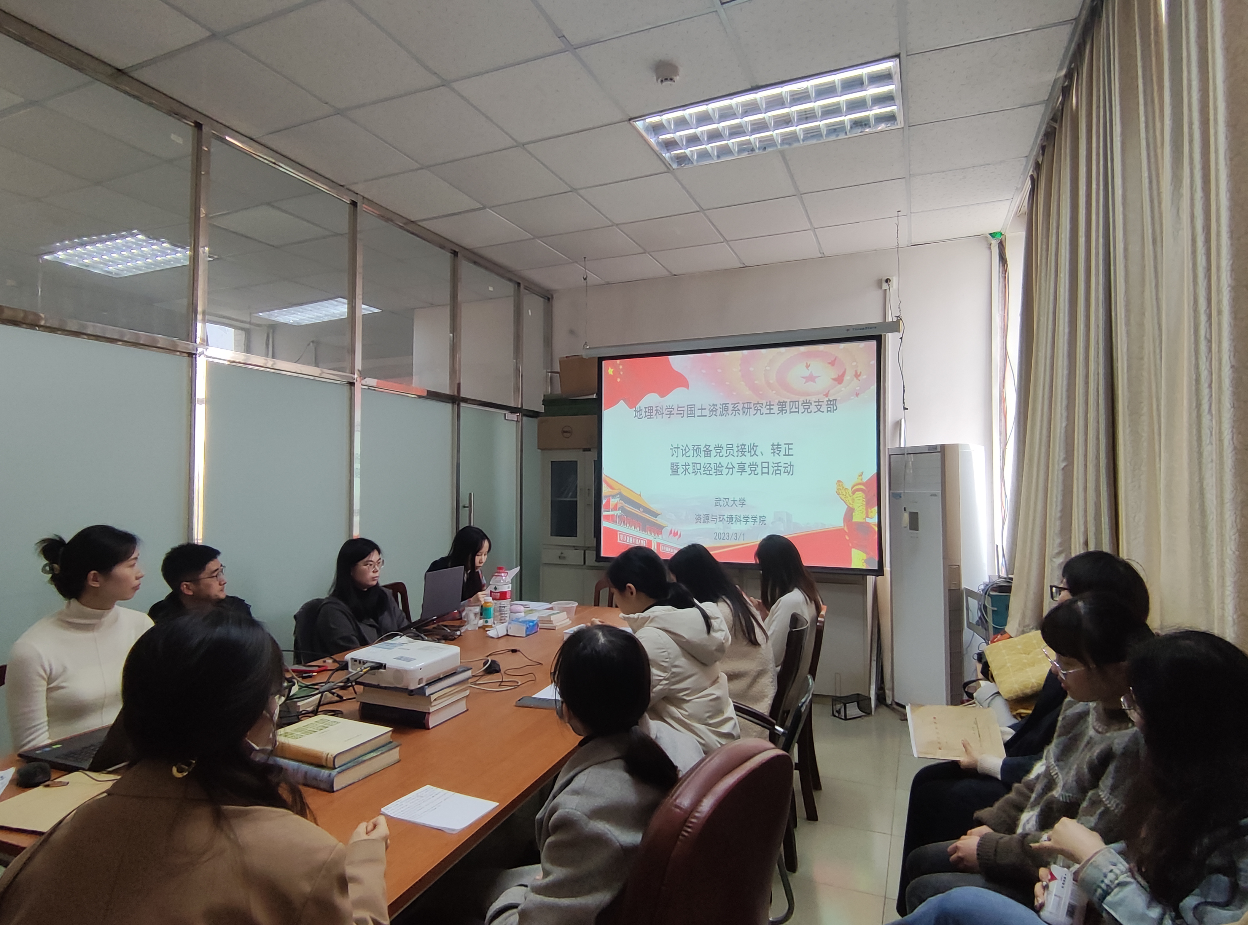至此,地理科学与国土资源系研究生第四党支部开展讨论预备党员接收转正暨求职经验分享党日活动圆满结束。