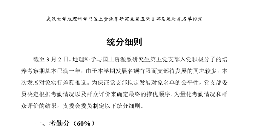会议第二项,审议并表决通过了地理科学与国土资源系研究生第五党支部关于支部入党积极分子推优办法。
