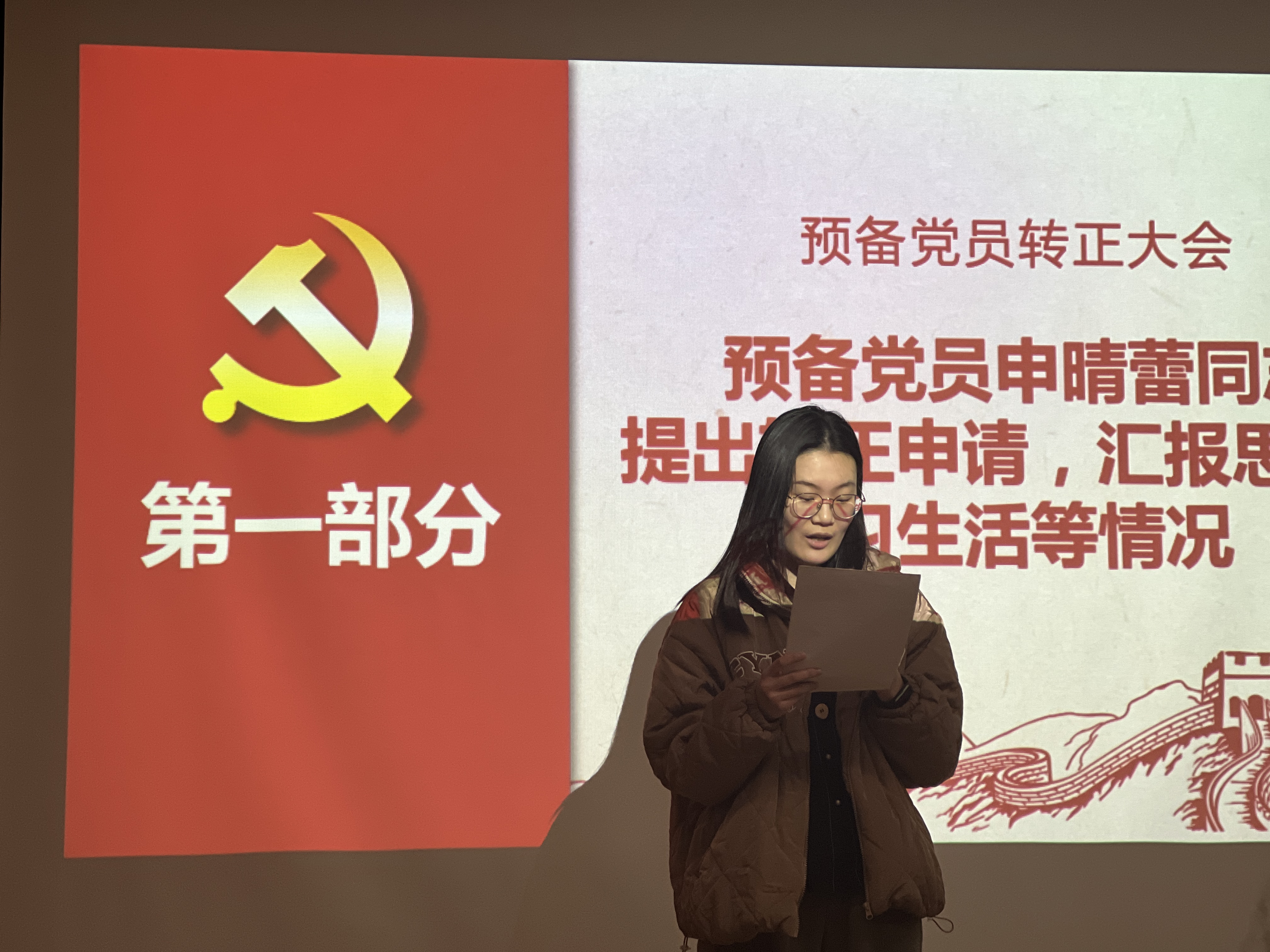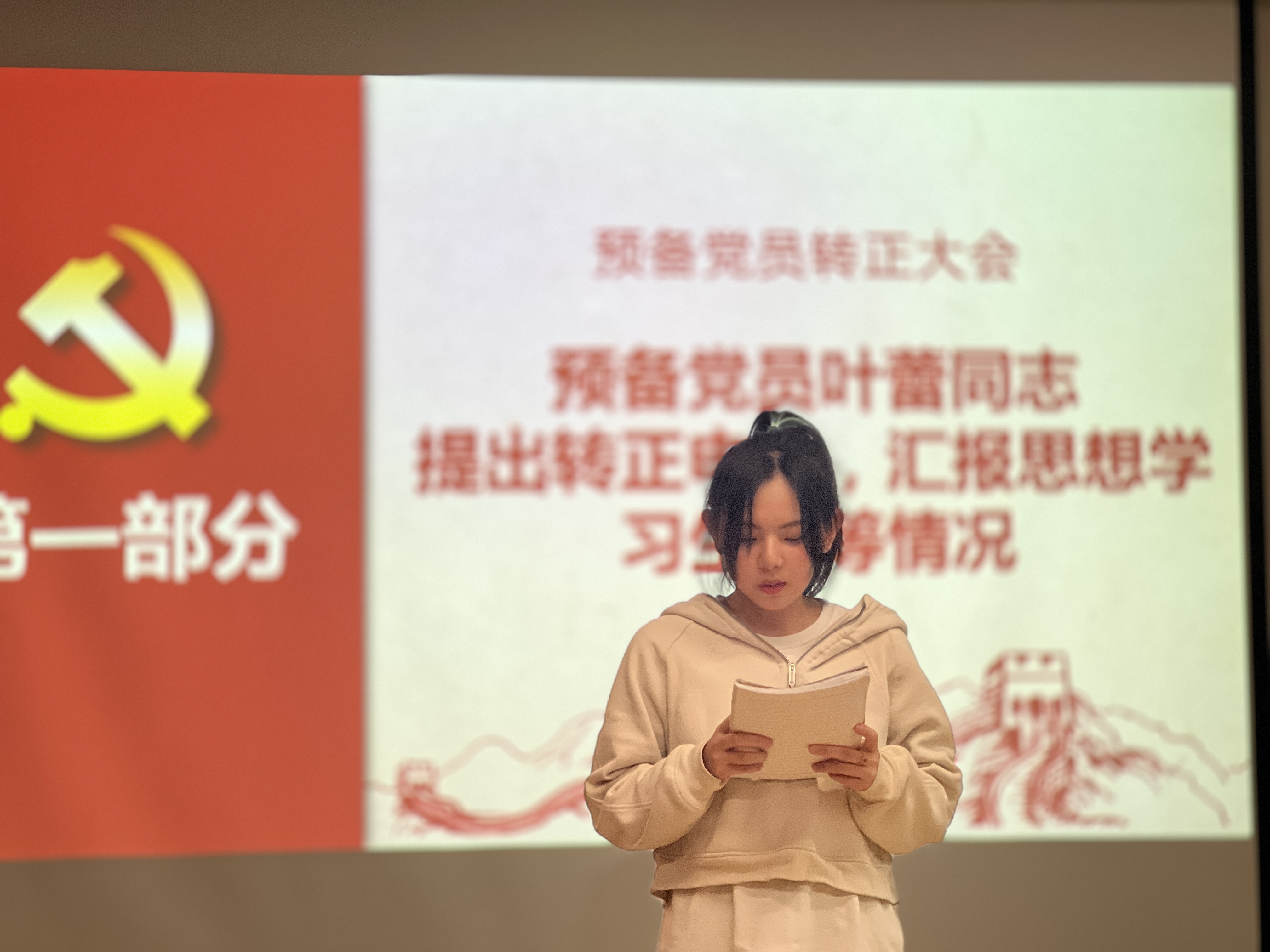 会议第项,讨论申晴蕾同志的转正工作。首先由申晴蕾同志汇报预备期间的思想和工作情况;之后由支部委员会报告申晴蕾同志预备期间的教育考察情况。与会党员何欣阳同志对申晴蕾同志预备期间的各方面表现予以肯定。经过有表决权的正式党员进行无记名投票,本次大会表决结果为:申晴蕾同志得赞成票23张,不赞成票0张,弃权票0张,同意按期转正为中共正式党员。最后,申晴蕾同志进行表态,向党组织表明了自己的决心和信心。