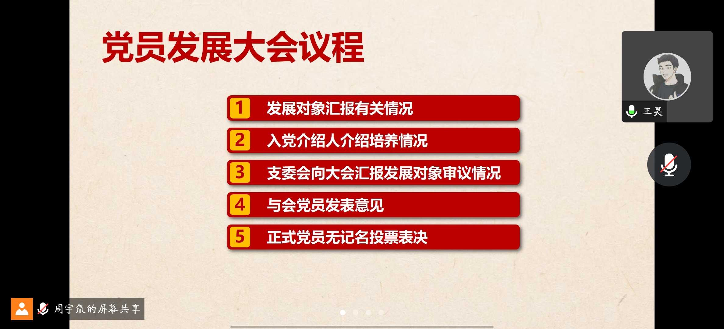 2023年3月29日晚上19:00,地理信息与地图科学系研究生第六党支部通过线上讨论的方式召开接收预备党员支部大会。本次会议由党支部书记周宇氚同志主持。支部党员、发展对象和入党积极分子参与此次会议。